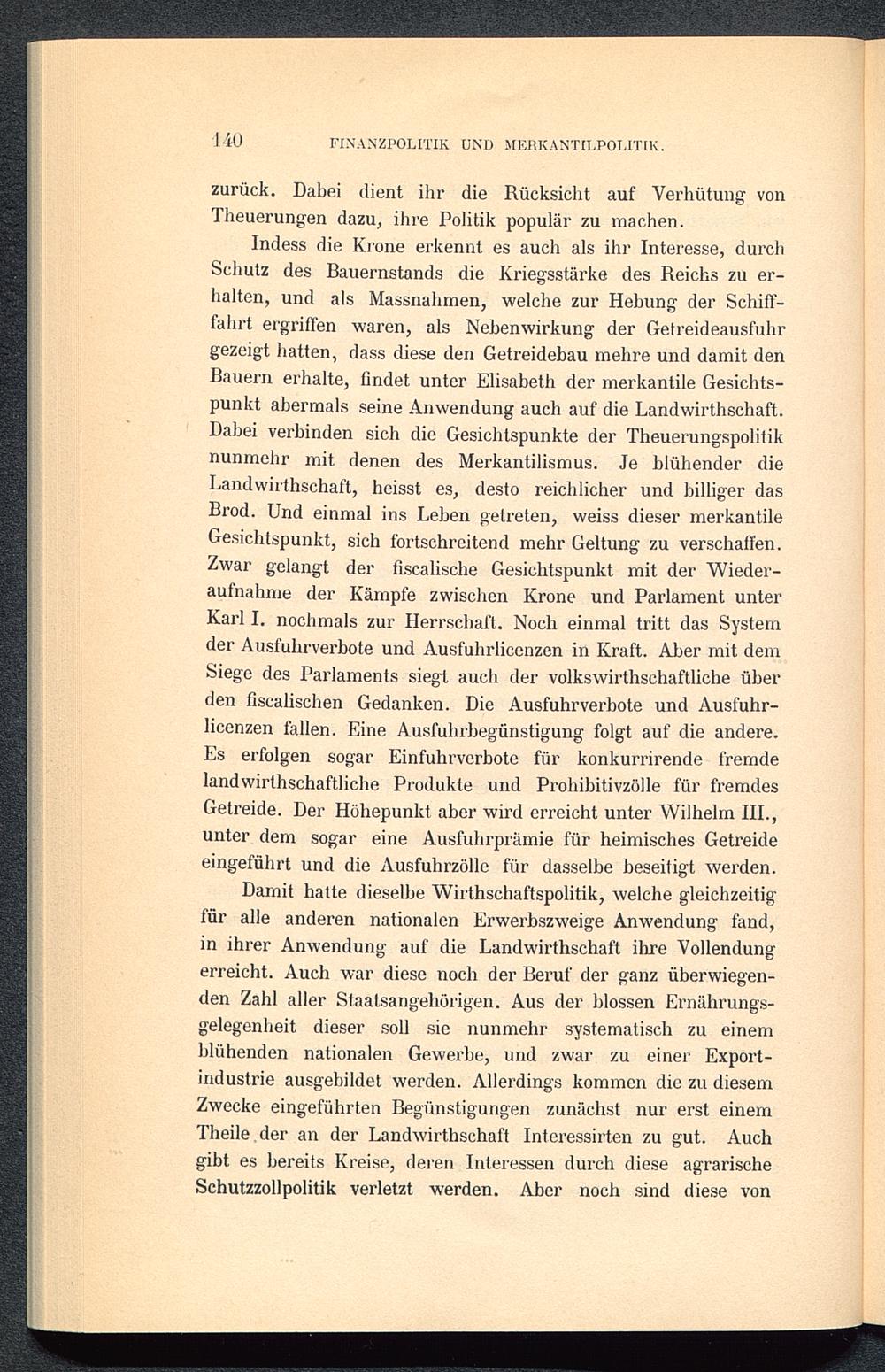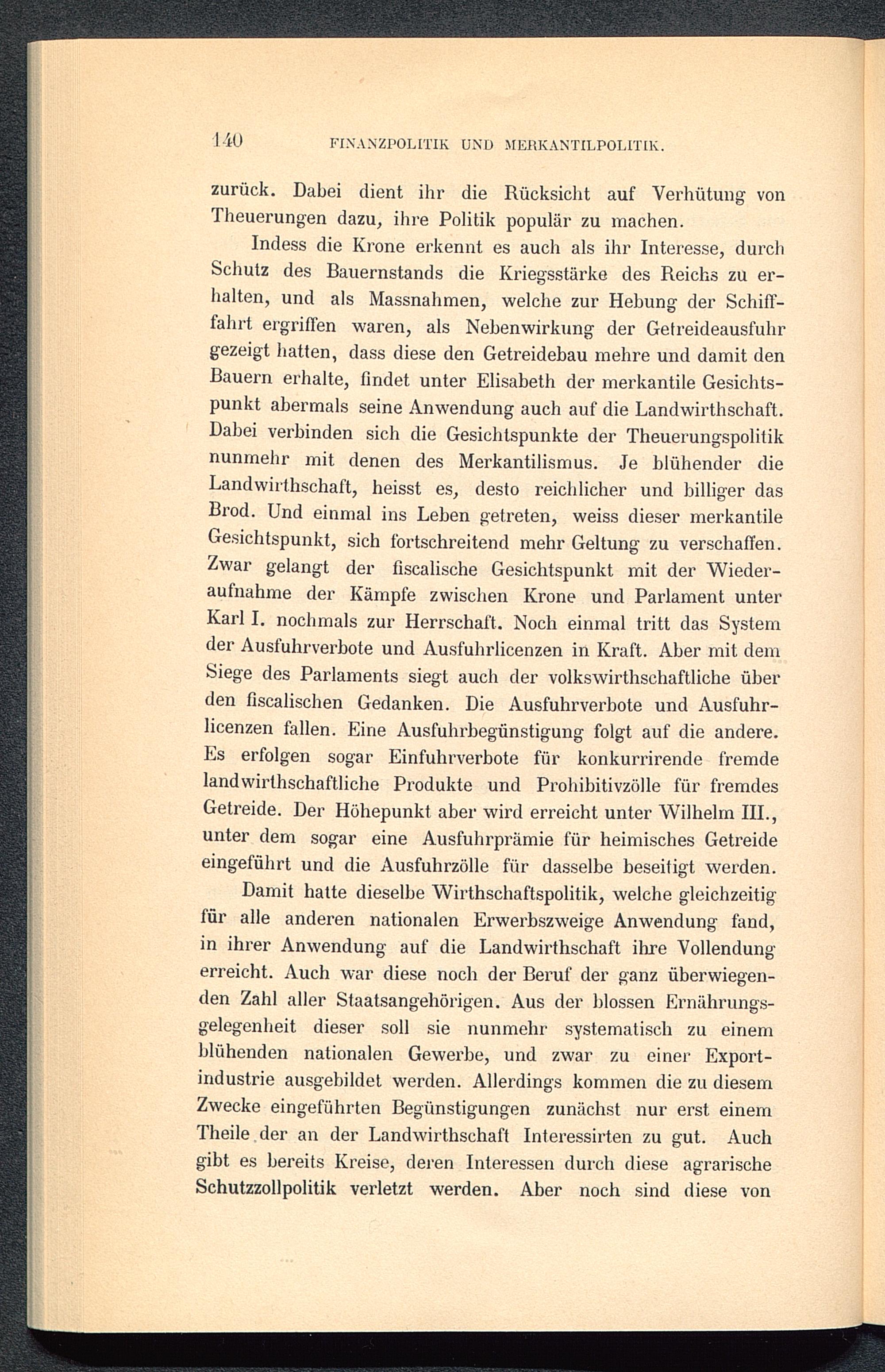 III. Die englische Getreidehandelspolitik von den Tudors bis zur Einführung der parlamentarischen Regierung