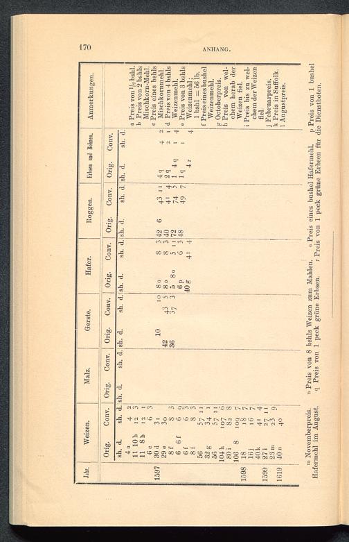III. Tabelle der Marktpreise von Weizen und Malz zu Windsor, von 1595-1700, nach den Rechnungsbüchern von Eton-College