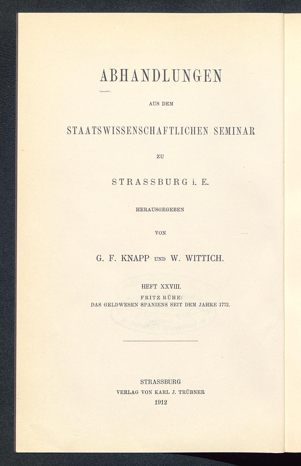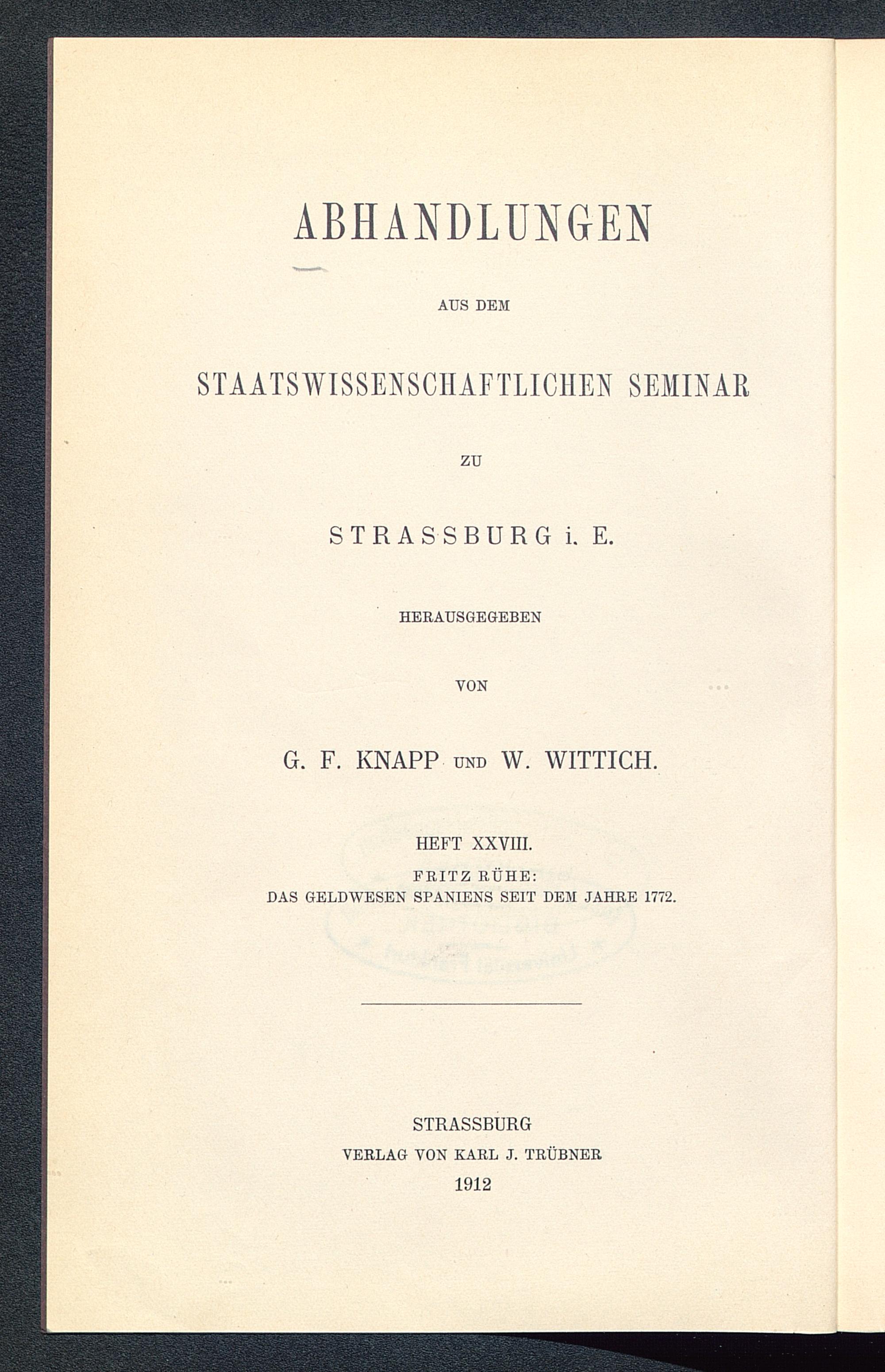 Das Geldwesen Spaniens seit dem Jahre 1772 / Fritz Rühe