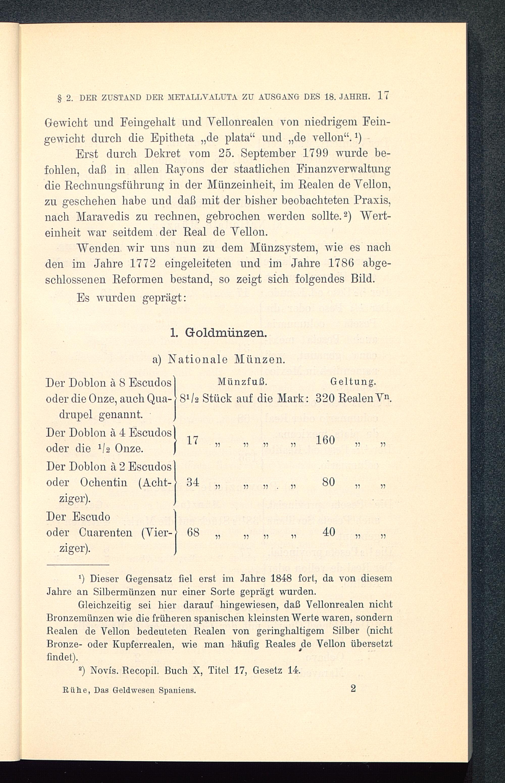 I. Kapitel. Die Entwickelung der spanischen staatlichen Zahlungsmittel von 1772-1848
