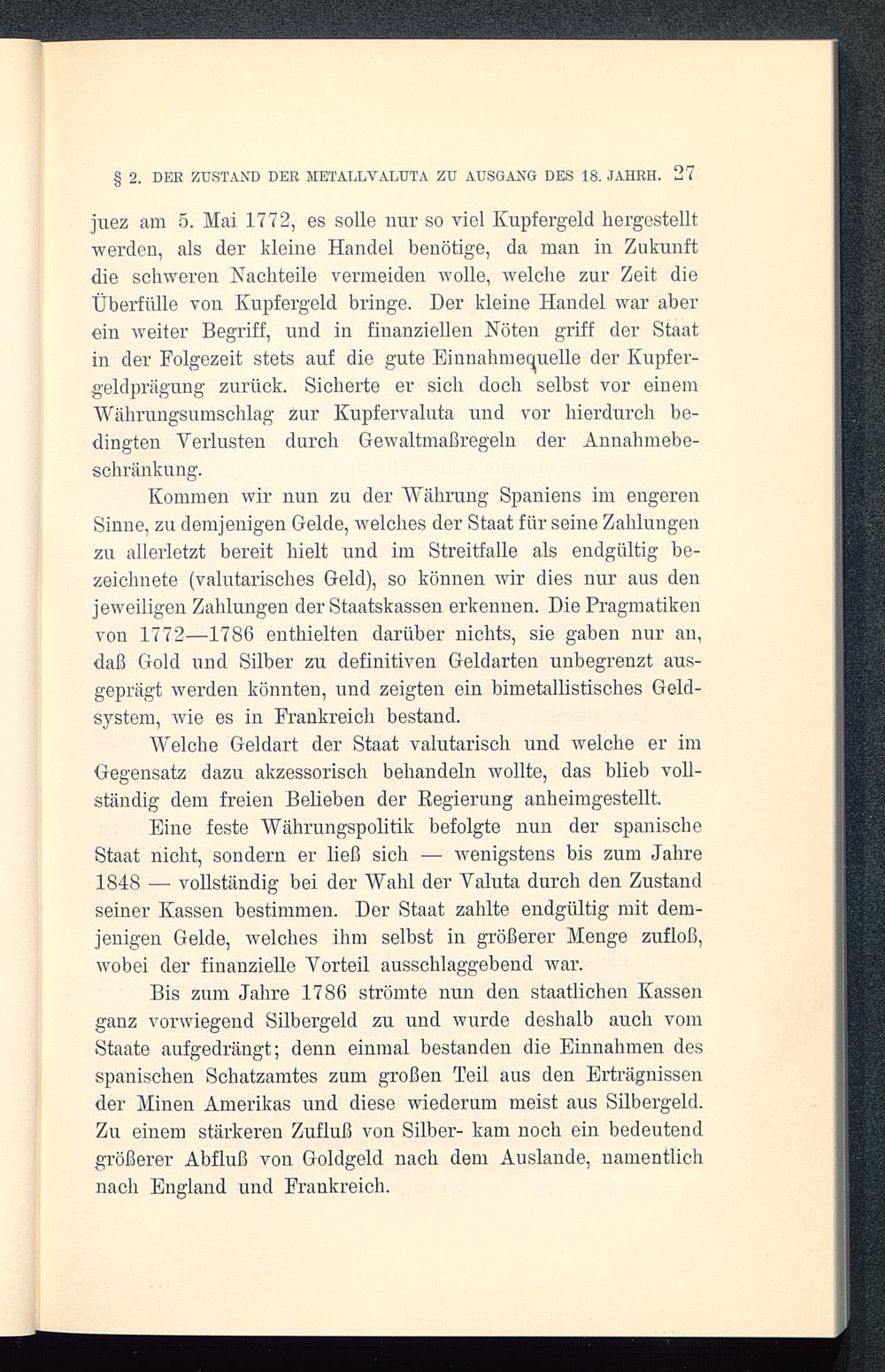 Das Geldwesen Spaniens seit dem Jahre 1772