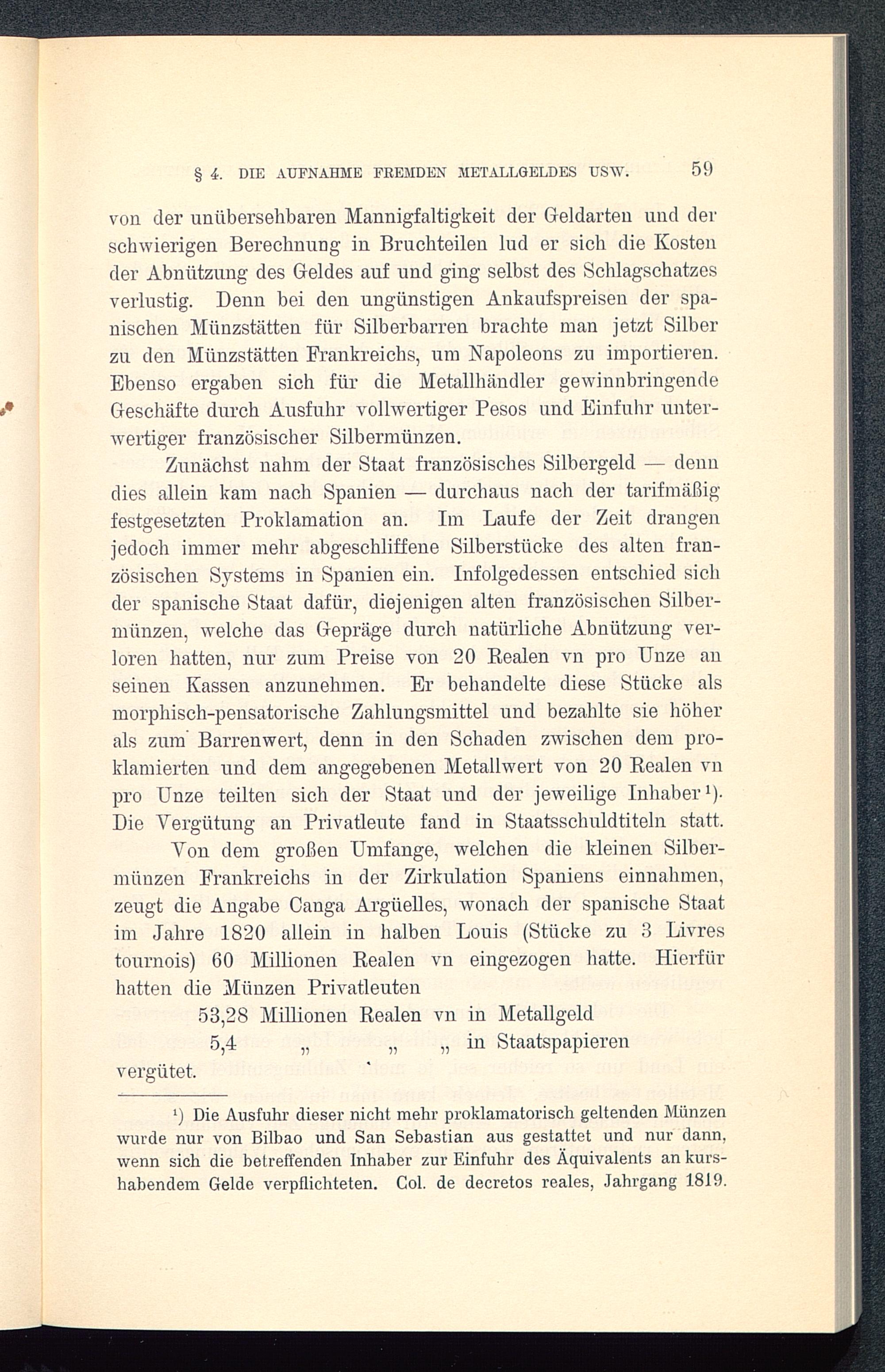 § 4. Die Aufnahme fremden Metallgeldes und das Abströmen der Silbermünzen spanischen Gepräges