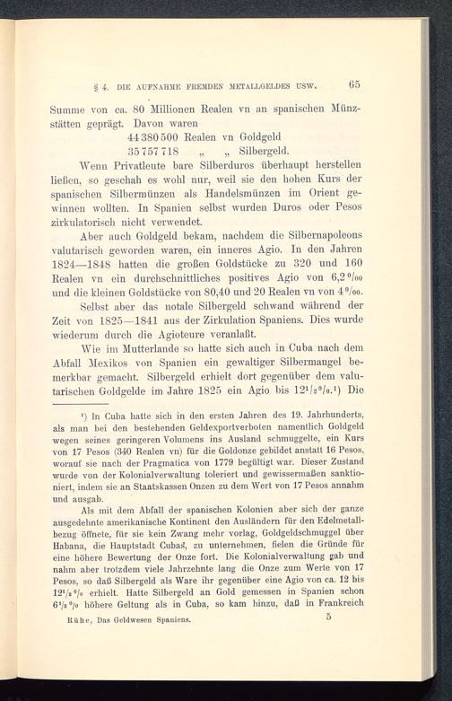 Das Geldwesen Spaniens seit dem Jahre 1772 / Fritz Rühe