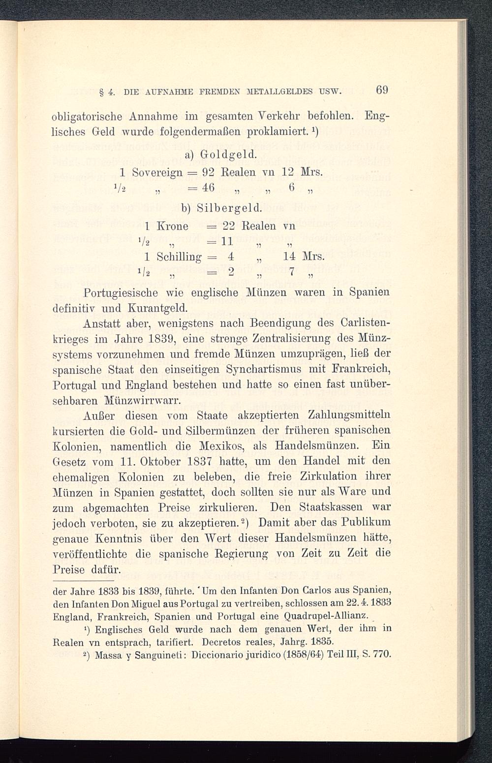 § 4. Die Aufnahme fremden Metallgeldes und das Abströmen der Silbermünzen spanischen Gepräges