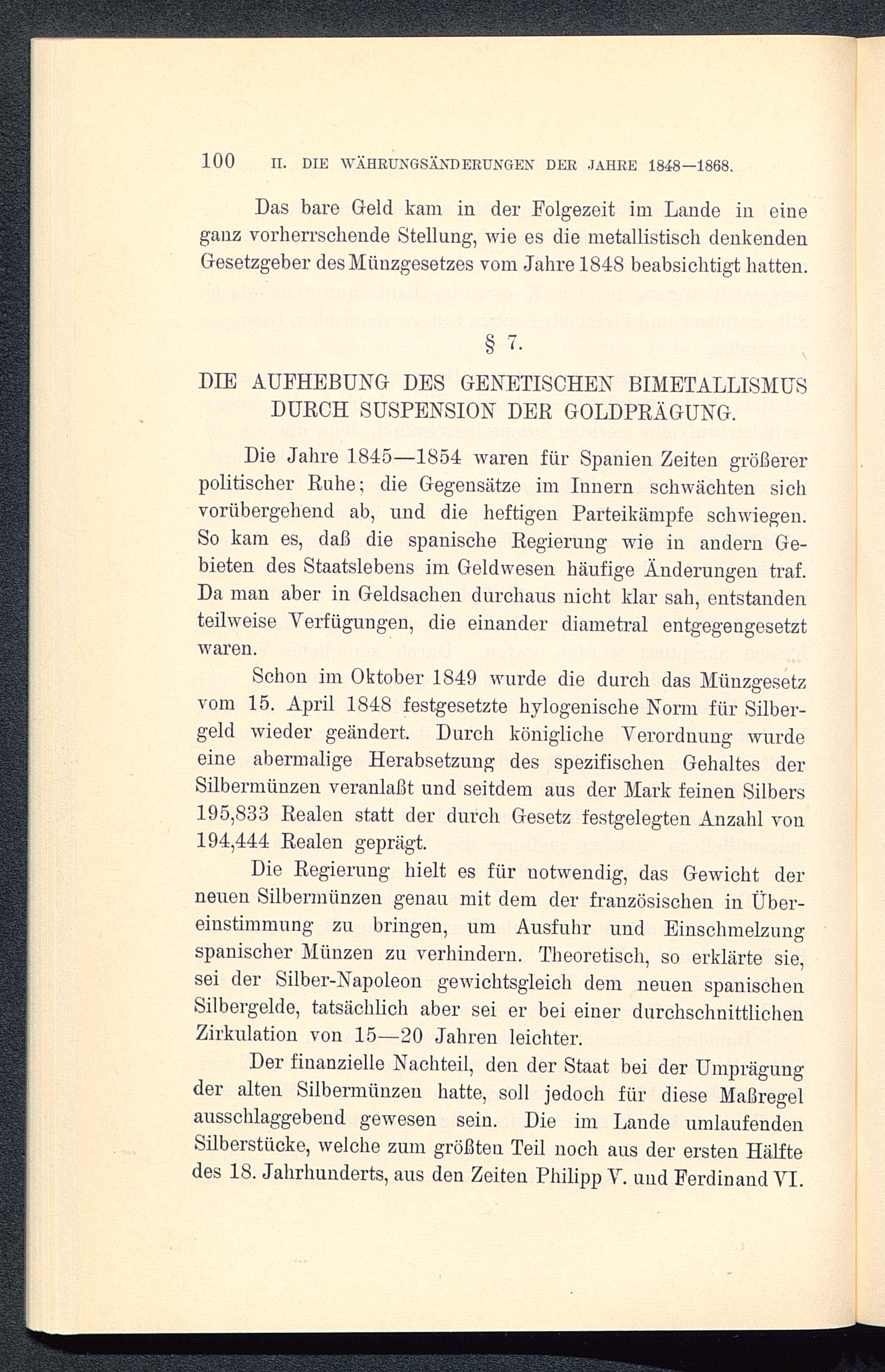 § 7. Die Aufhebung des genetischen Bimetallismus durch Suspension der Goldprägung