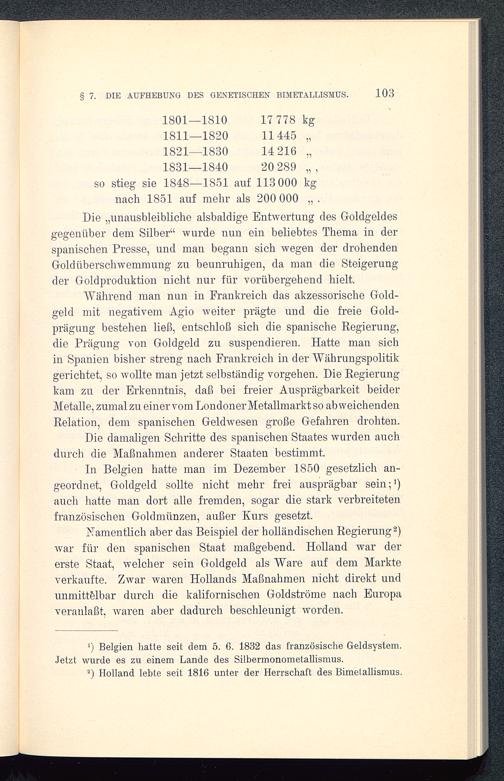 § 7. Die Aufhebung des genetischen Bimetallismus durch Suspension der Goldprägung