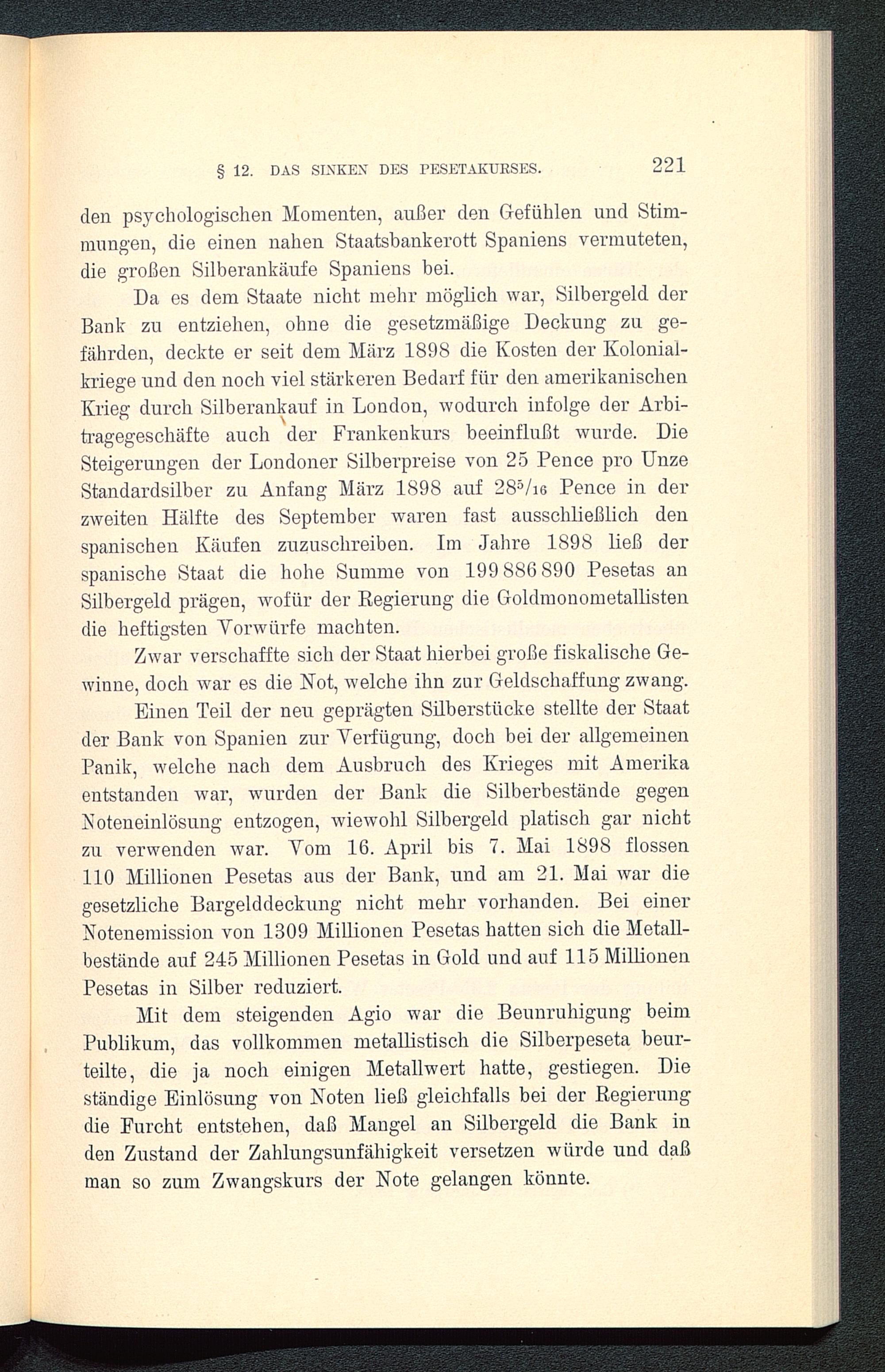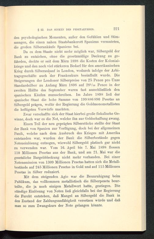 § 12. Das Sinken des Pesetakurses infolge der Verschlechterung der handelspolitischen Stellung und des mangels exodromischer Verwaltungstätigkeit