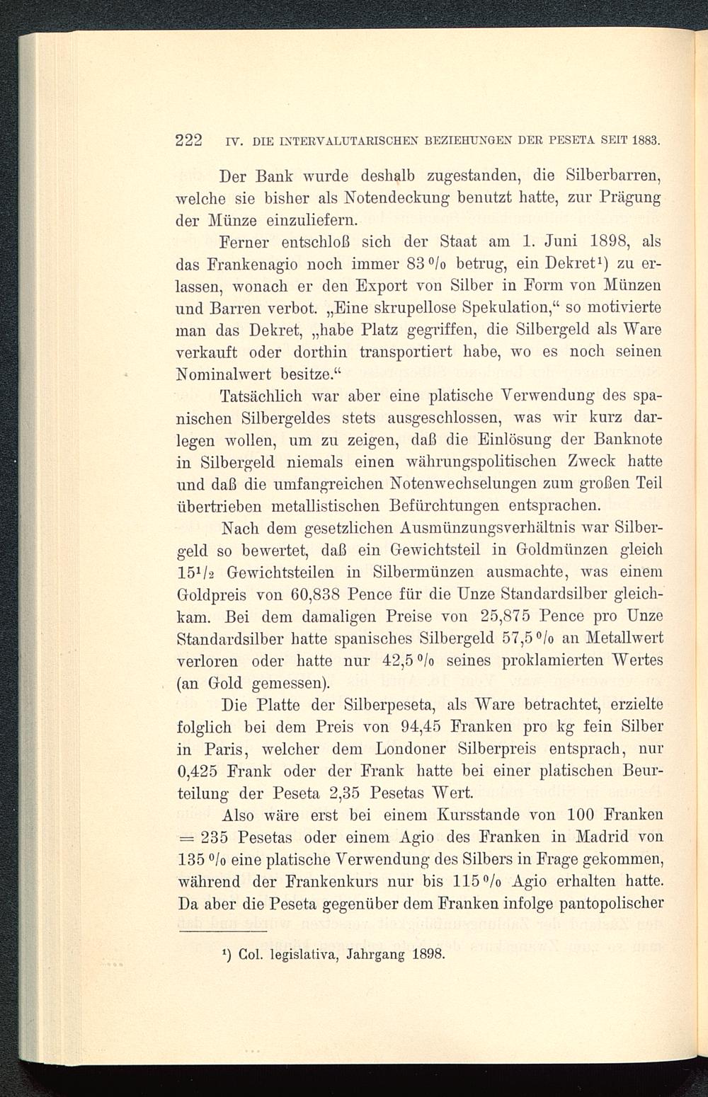IV. Kapitel. Die intervalutarischen Beziehungen der Peseta seit dem Jahre 1883