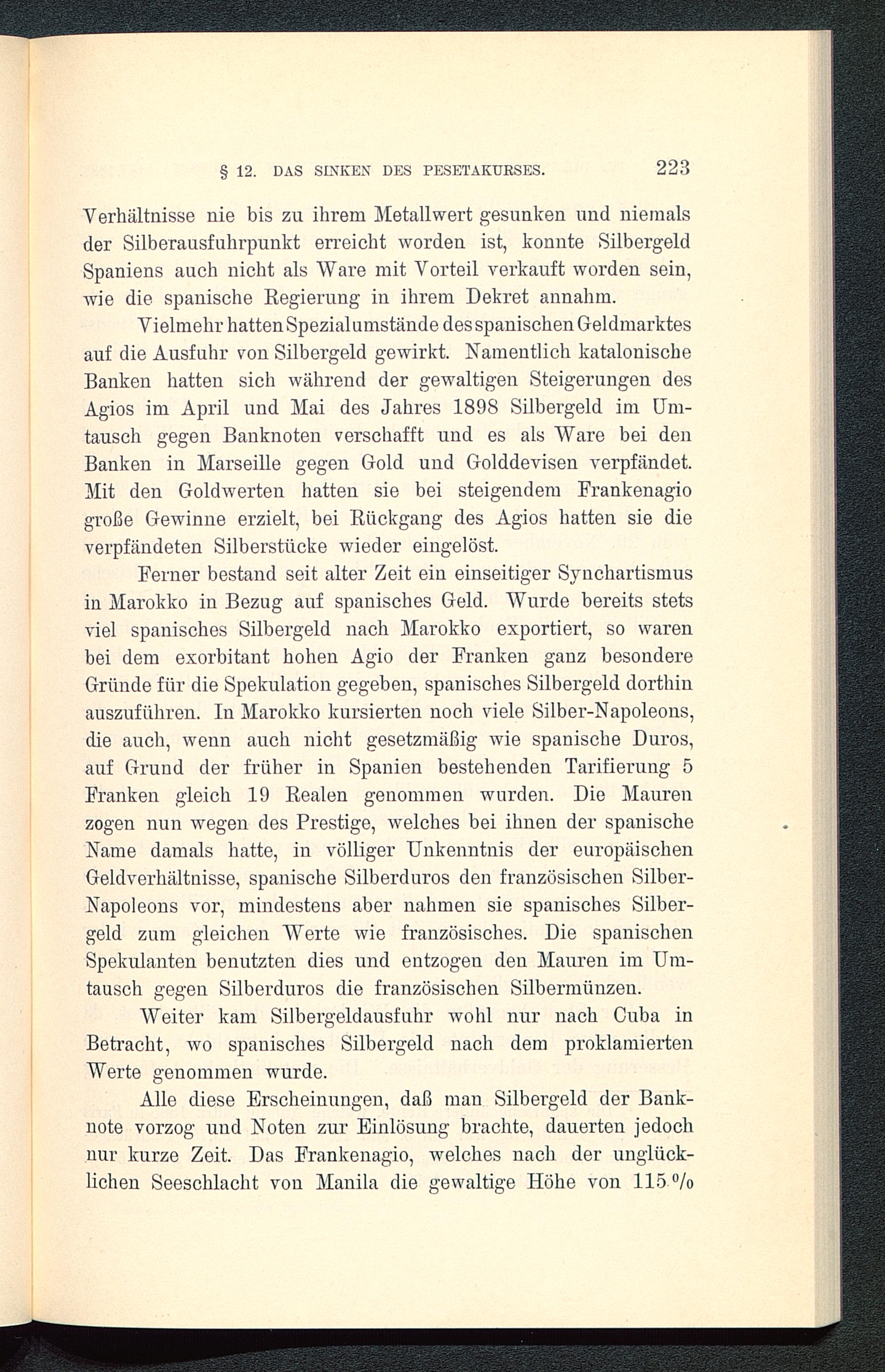 § 12. Das Sinken des Pesetakurses infolge der Verschlechterung der handelspolitischen Stellung und des mangels exodromischer Verwaltungstätigkeit