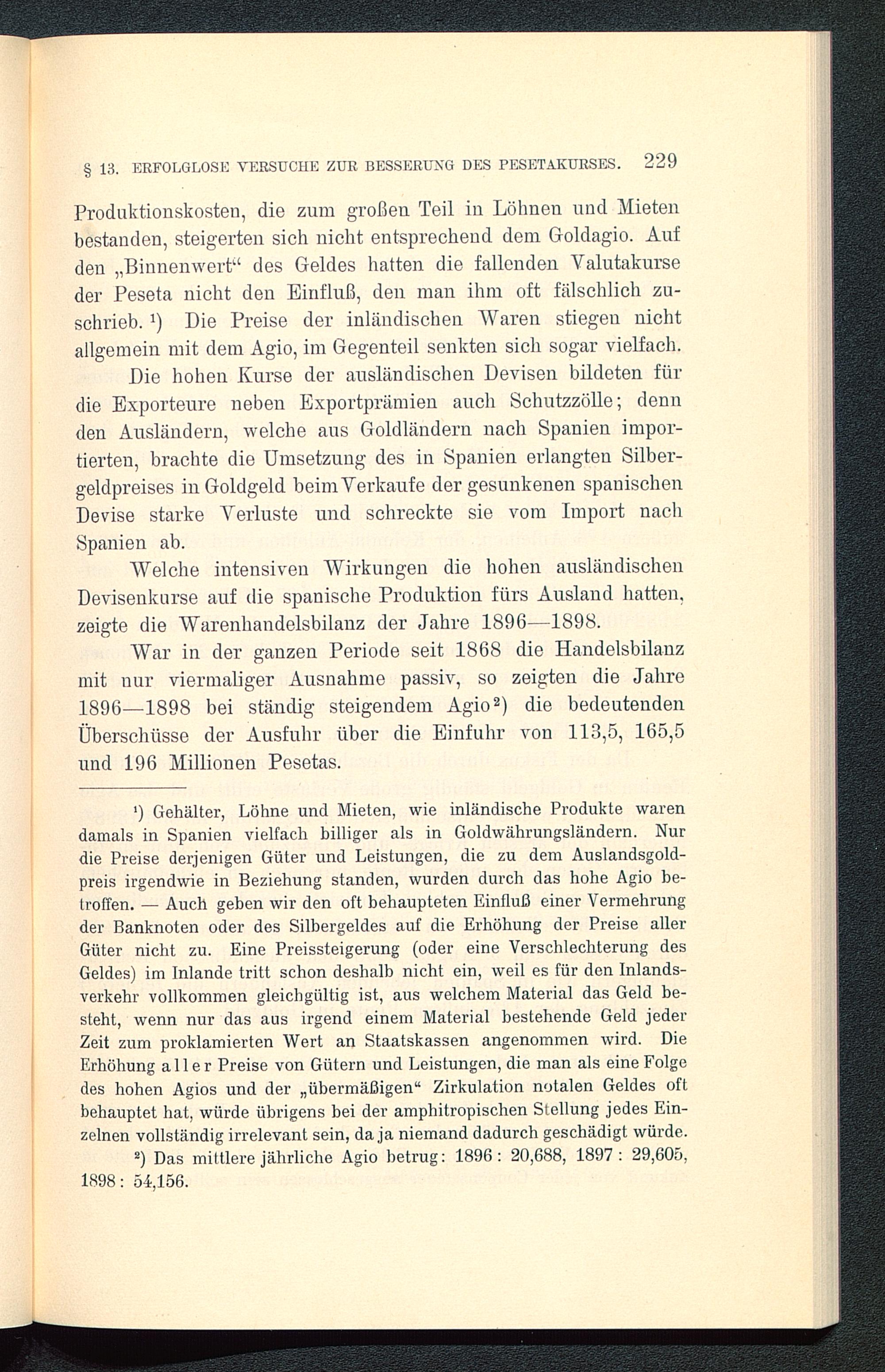 § 12. Das Sinken des Pesetakurses infolge der Verschlechterung der handelspolitischen Stellung und des mangels exodromischer Verwaltungstätigkeit