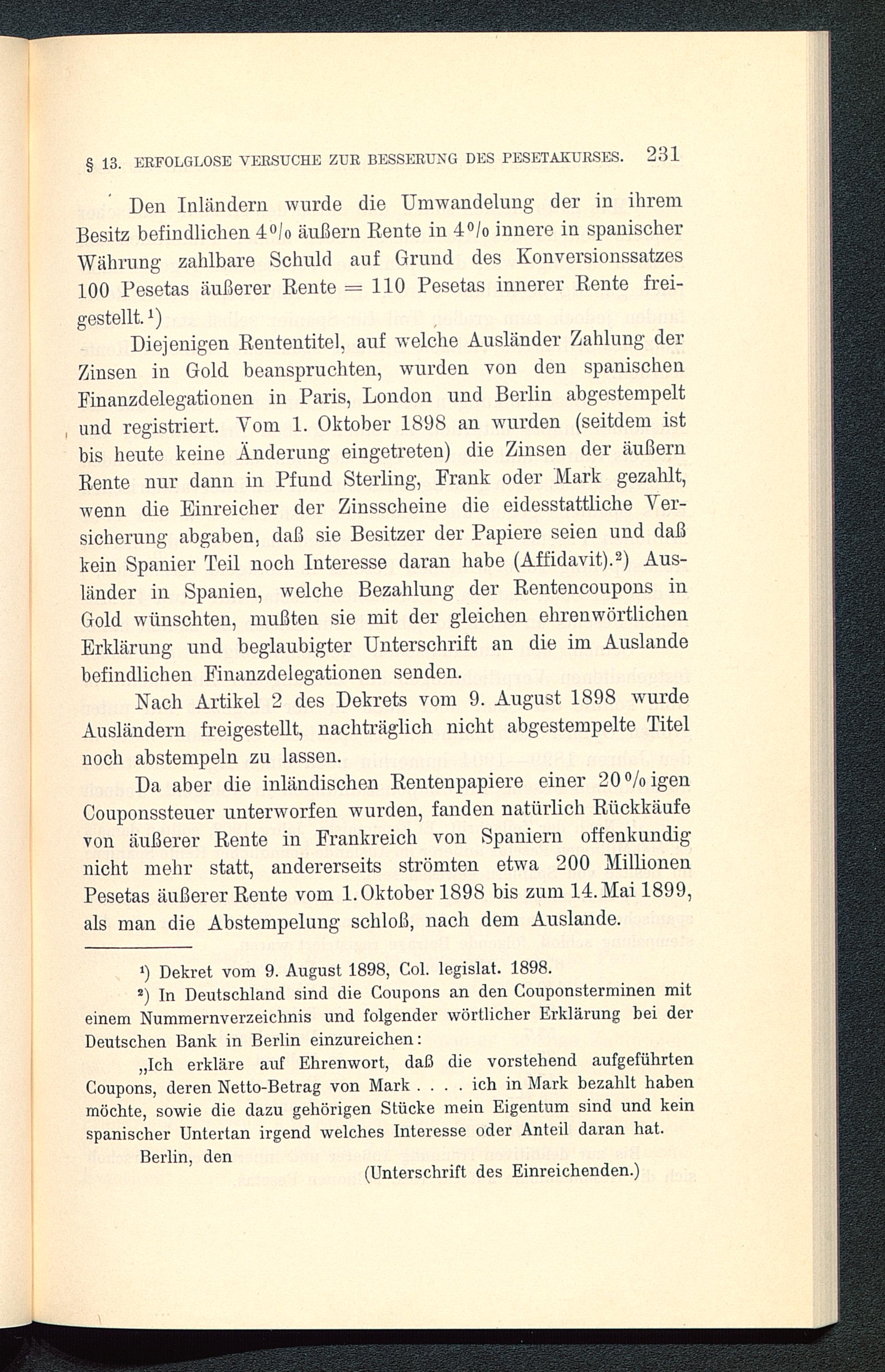 § 12. Das Sinken des Pesetakurses infolge der Verschlechterung der handelspolitischen Stellung und des mangels exodromischer Verwaltungstätigkeit