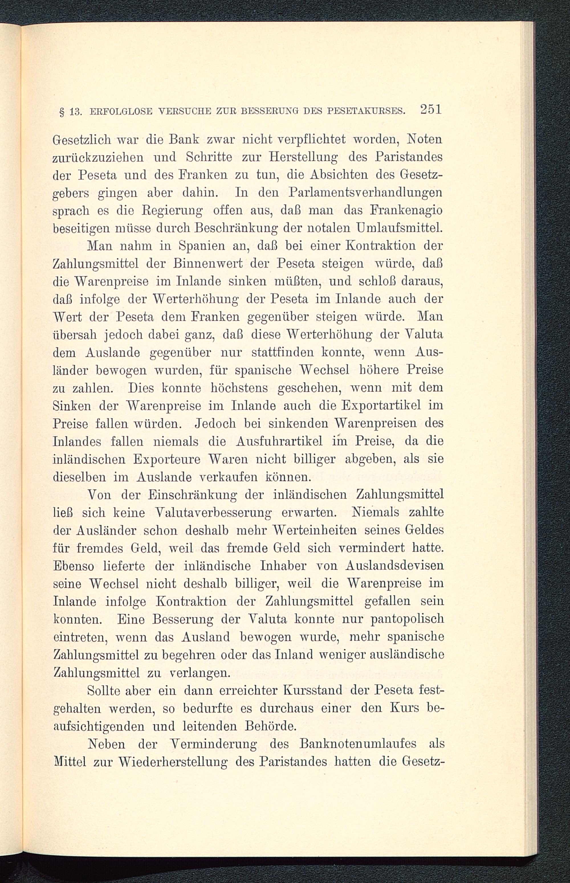 § 12. Das Sinken des Pesetakurses infolge der Verschlechterung der handelspolitischen Stellung und des mangels exodromischer Verwaltungstätigkeit