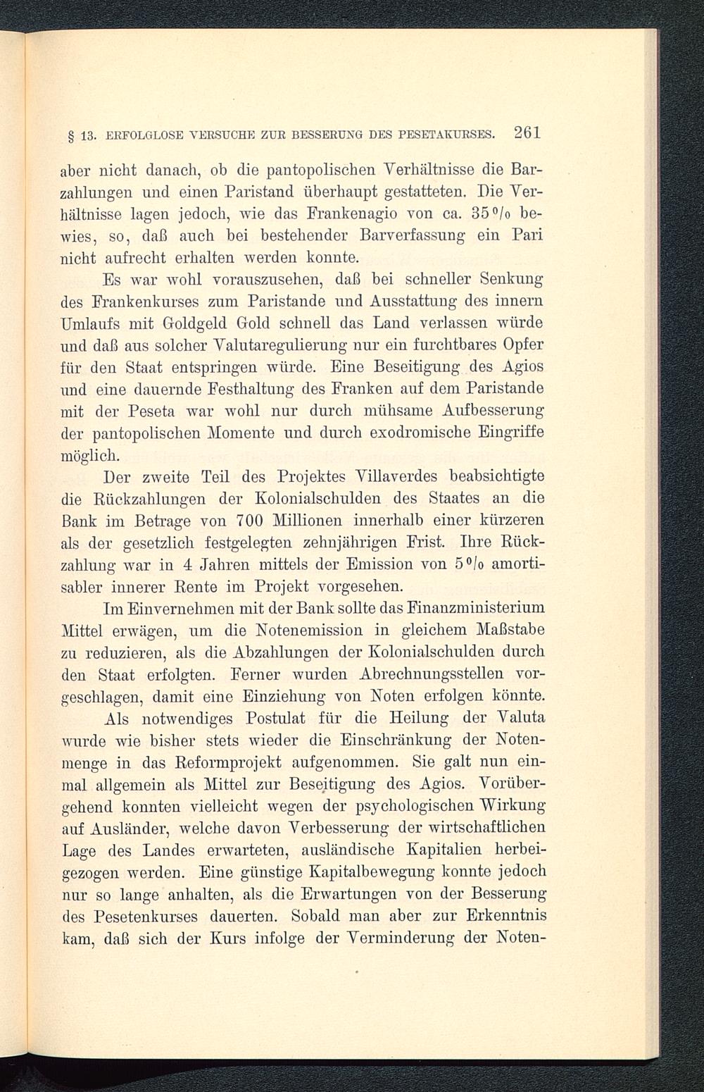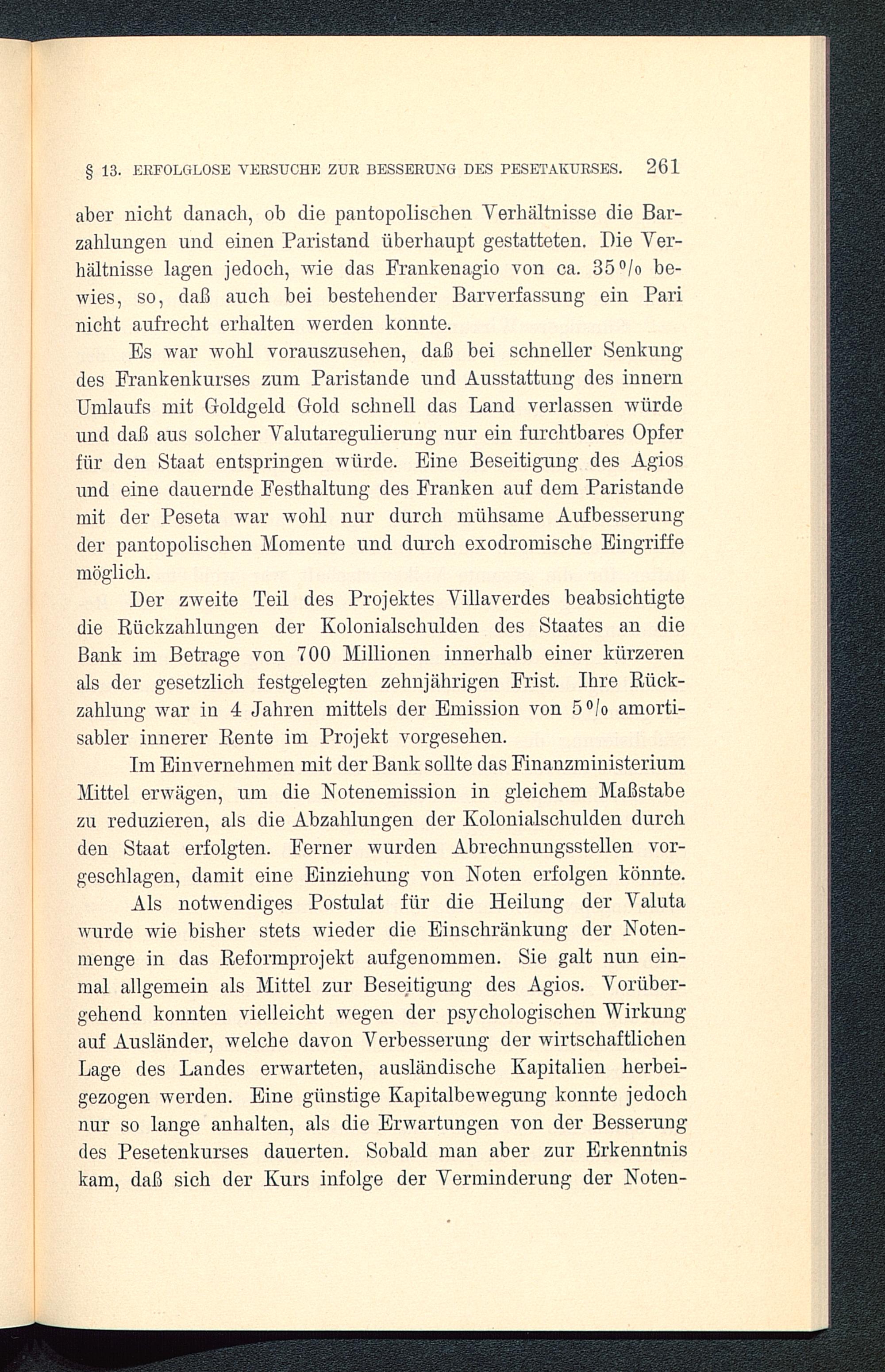 § 12. Das Sinken des Pesetakurses infolge der Verschlechterung der handelspolitischen Stellung und des mangels exodromischer Verwaltungstätigkeit