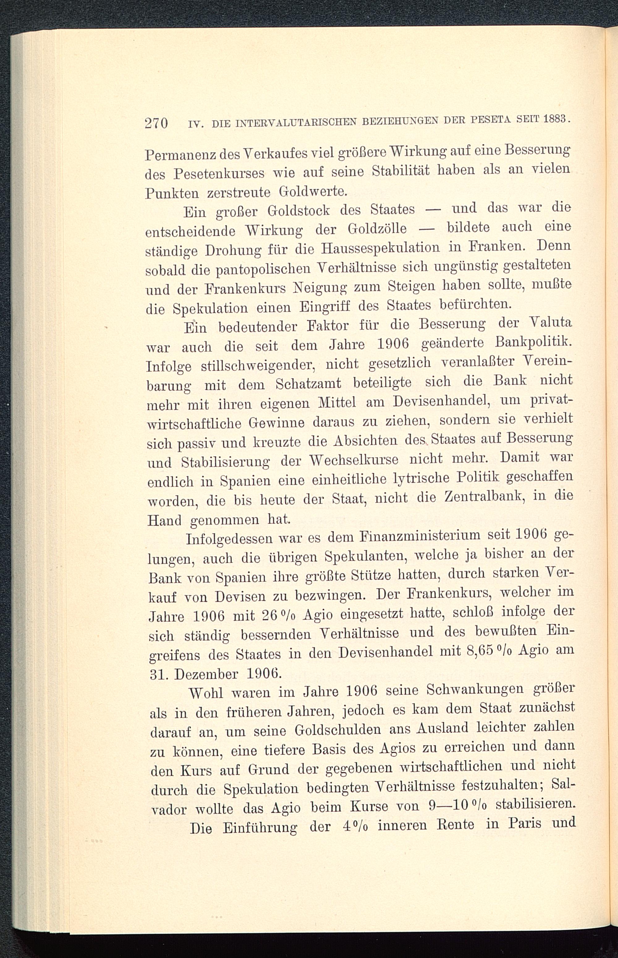 § 12. Das Sinken des Pesetakurses infolge der Verschlechterung der handelspolitischen Stellung und des mangels exodromischer Verwaltungstätigkeit