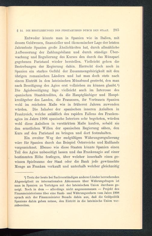 § 12. Das Sinken des Pesetakurses infolge der Verschlechterung der handelspolitischen Stellung und des mangels exodromischer Verwaltungstätigkeit