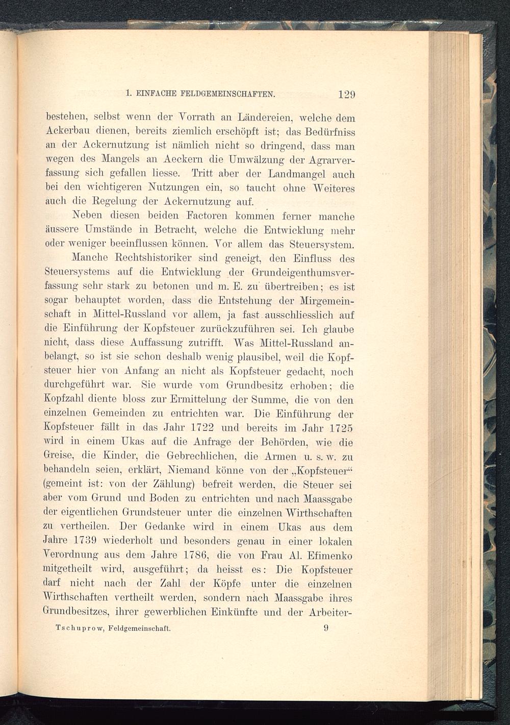 Die Feldgemeinschaft : eine morphologische Untersuchung / von Alexander A. Tschuprow