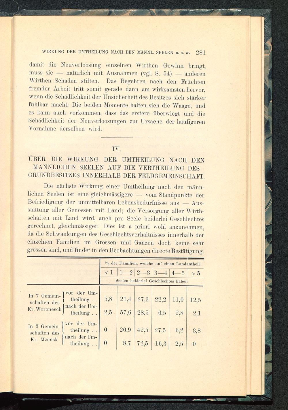 IV. Über die Wirkung der Umtheilung nach den männlichen Seelen auf die Vertheilung des Grundbesitzes innerhalb der Feldgemeinschaft