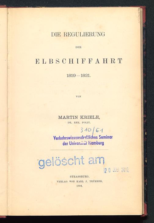 Die Regulierung der Elbschiffahrt 1819 - 1821 / von Martin Kriele