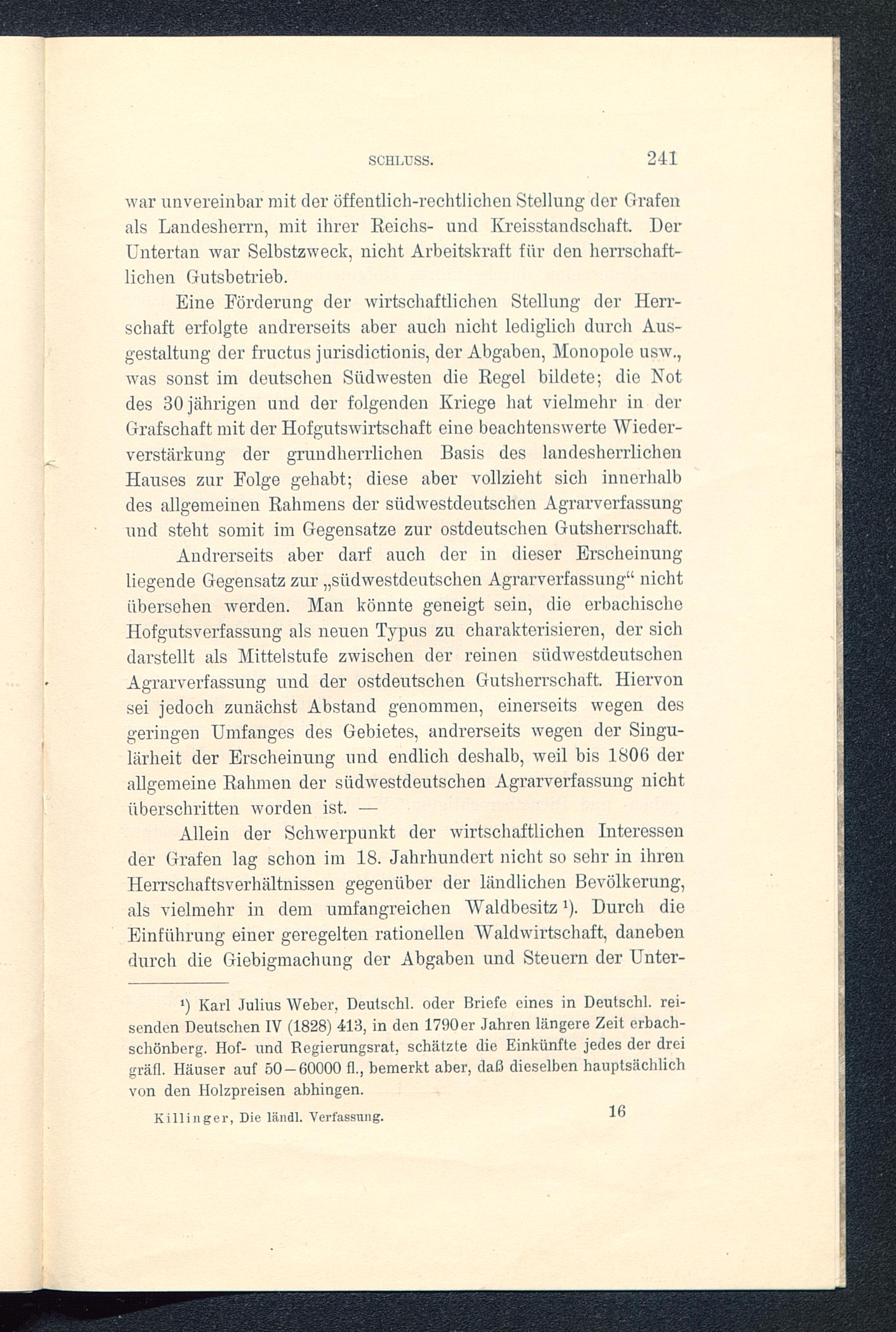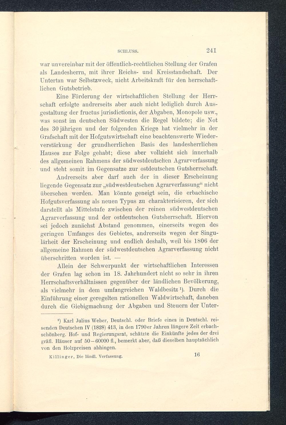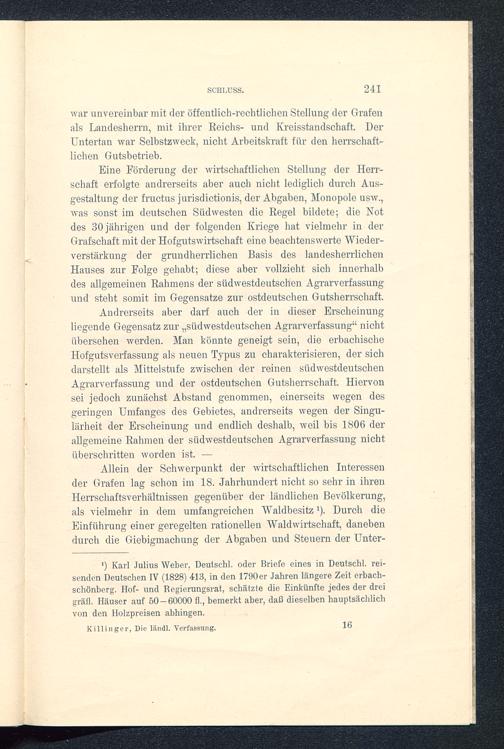 Die ländliche Verfassung der Grafschaft Erbach und der Herrschaft Breuberg im 18. Jahrhundert : ein Beitrag zur deutschen Rechts- und Wirtschaftsgeschichte / von German Killinger