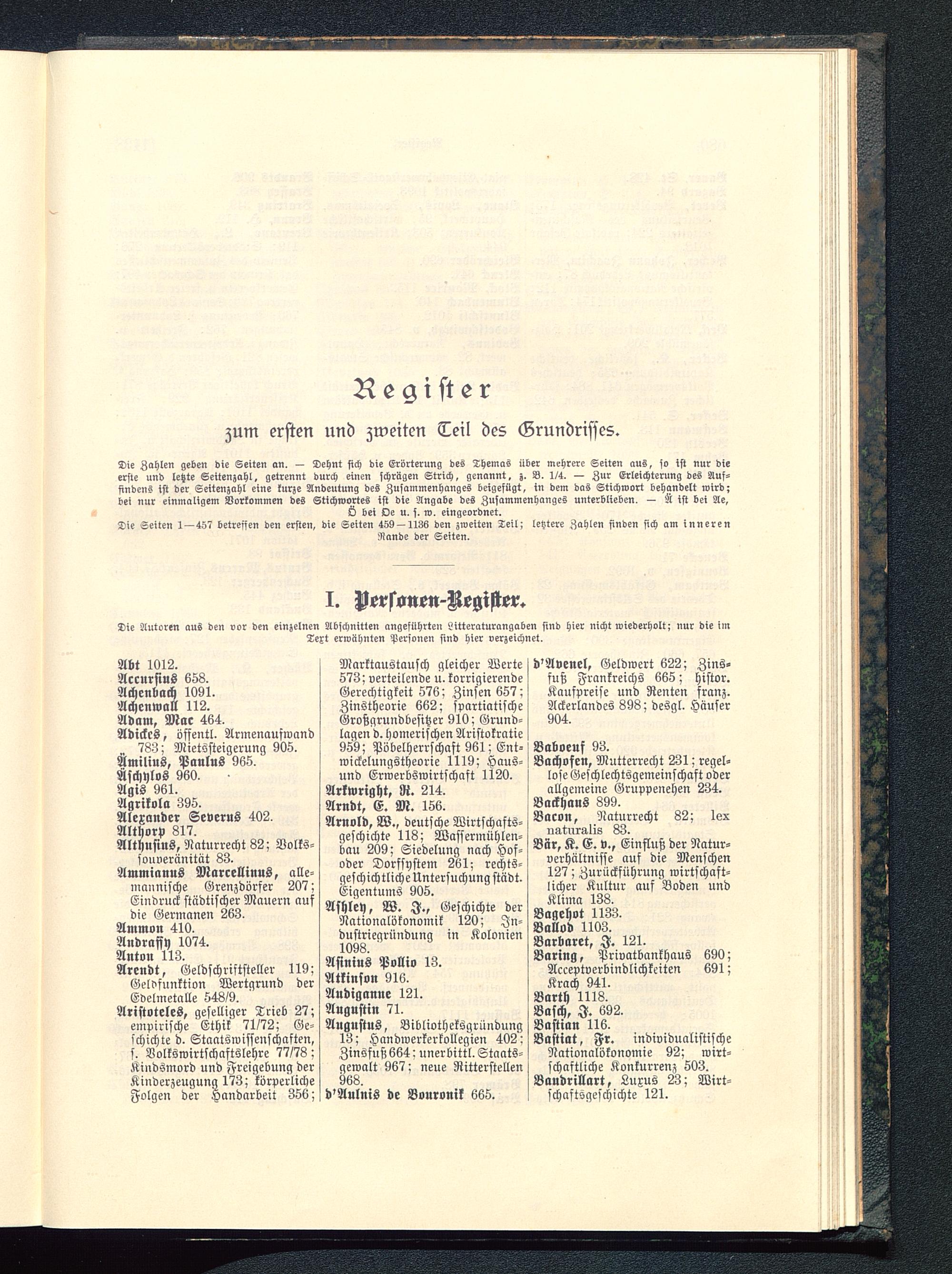 Register zum ersten und zweiten Teil des Grundrisses