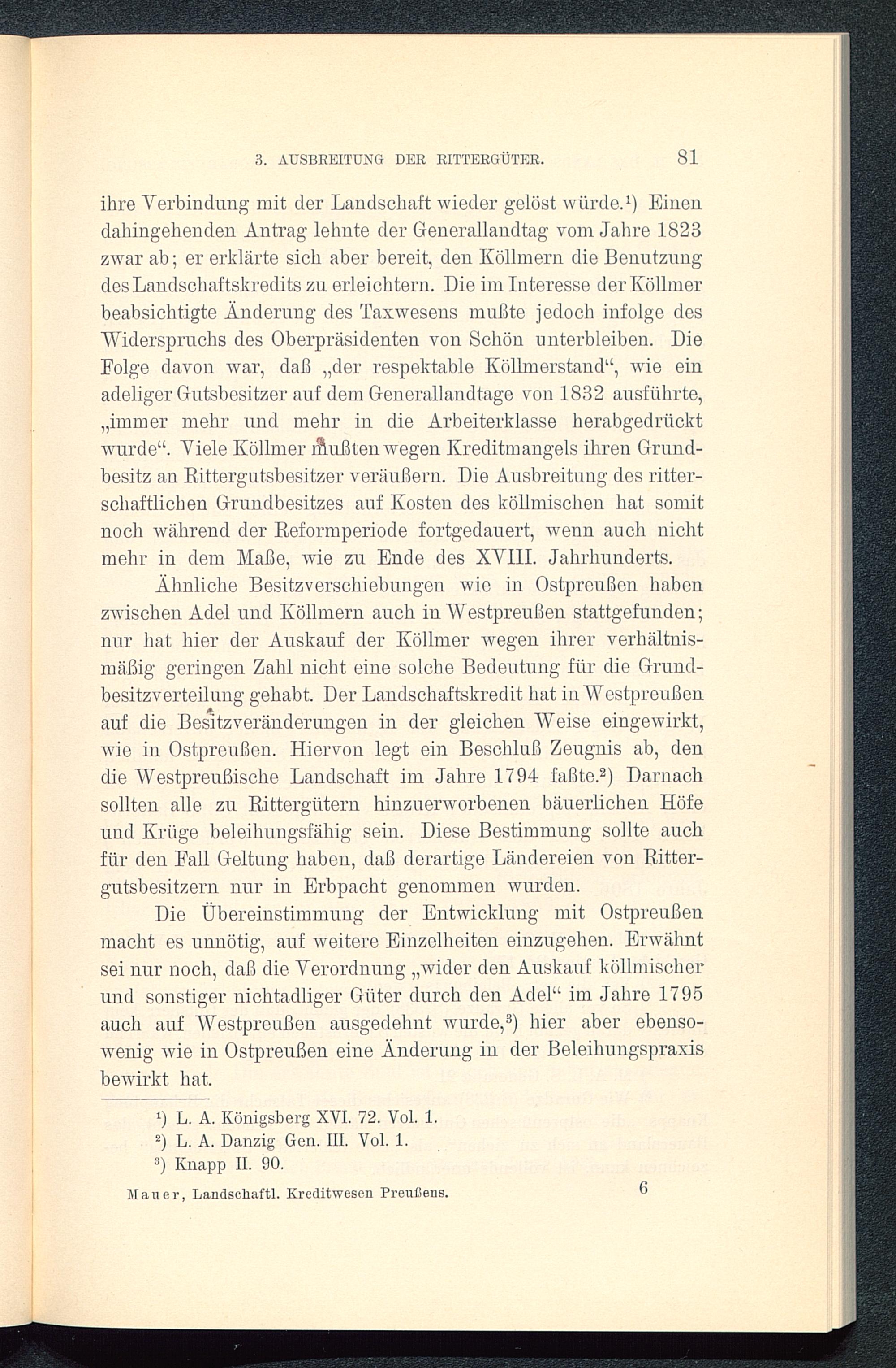 Das landschaftliche Kreditwesen Preussens : agrargeschichtlich und volkswirtschaftlich betrachtet ; ein Beitrag zur Geschichte der Bodenkreditpolitik des Preussischen Staates / von Hermann Mauer