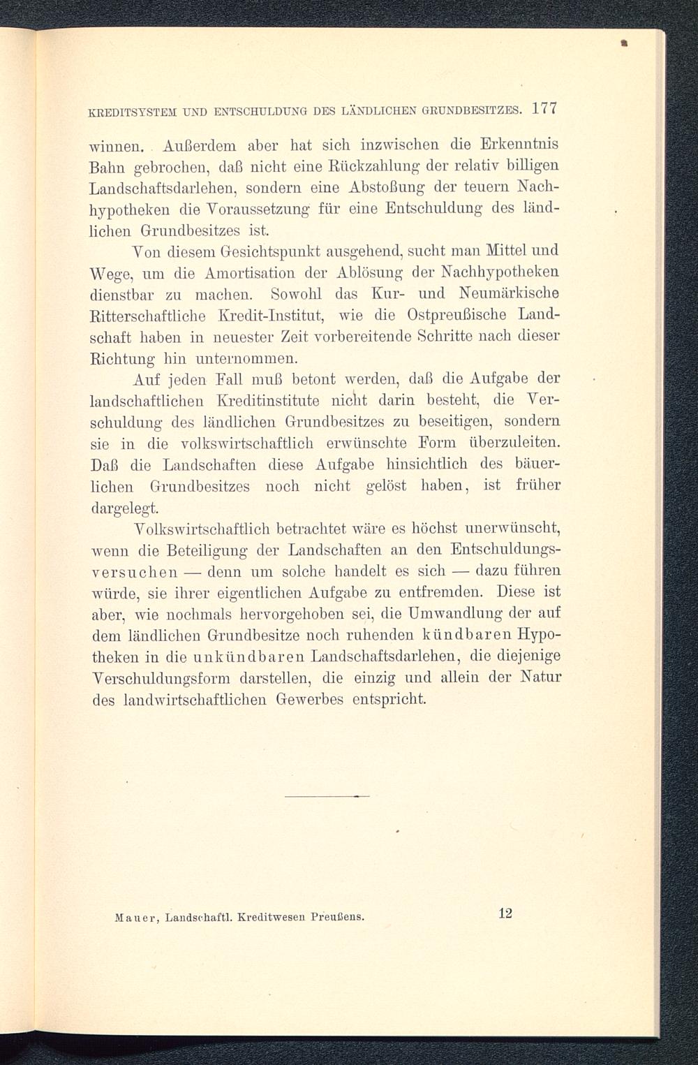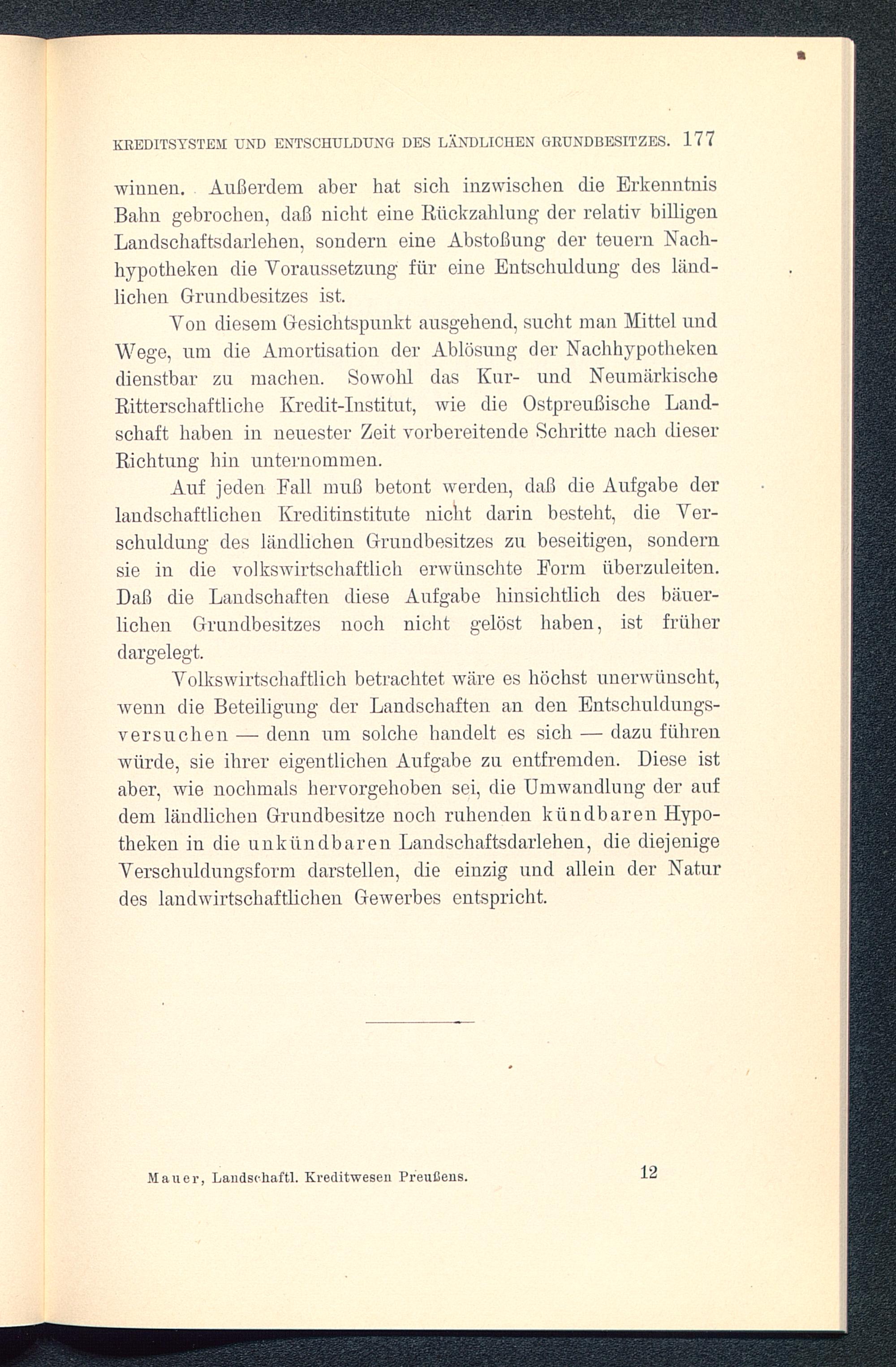 Das landschaftliche Kreditwesen Preussens : agrargeschichtlich und volkswirtschaftlich betrachtet ; ein Beitrag zur Geschichte der Bodenkreditpolitik des Preussischen Staates / von Hermann Mauer