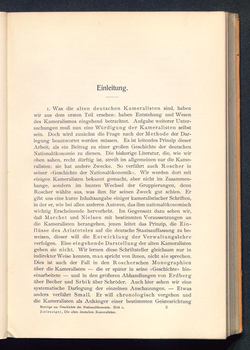 Die alten deutschen Kameralisten : ein Beitrag zur Geschichte der Nationalökonomie und zum Problem des Merkantilismus / von Kurt Zielenziger
