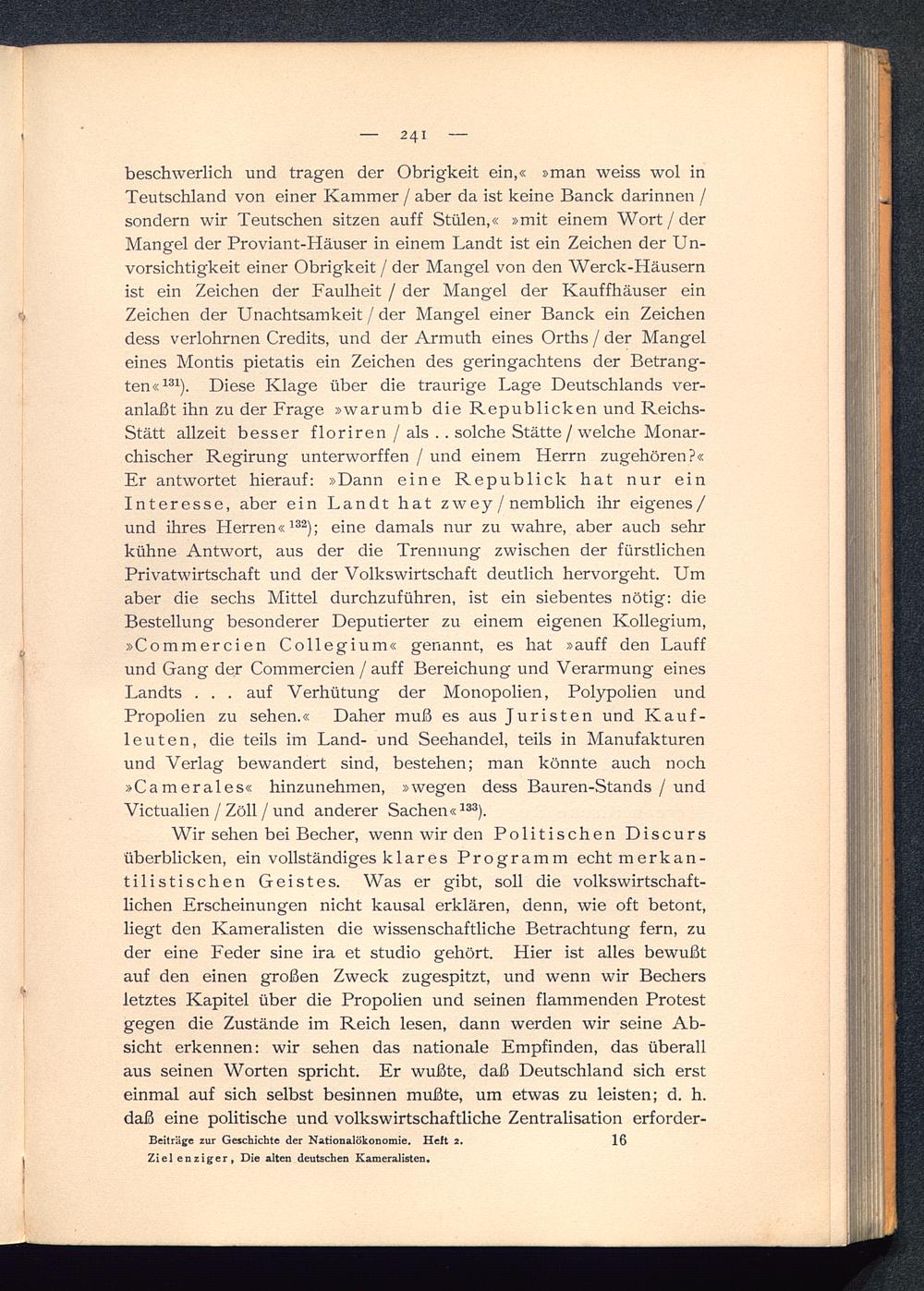 Die alten deutschen Kameralisten : ein Beitrag zur Geschichte der Nationalökonomie und zum Problem des Merkantilismus / von Kurt Zielenziger