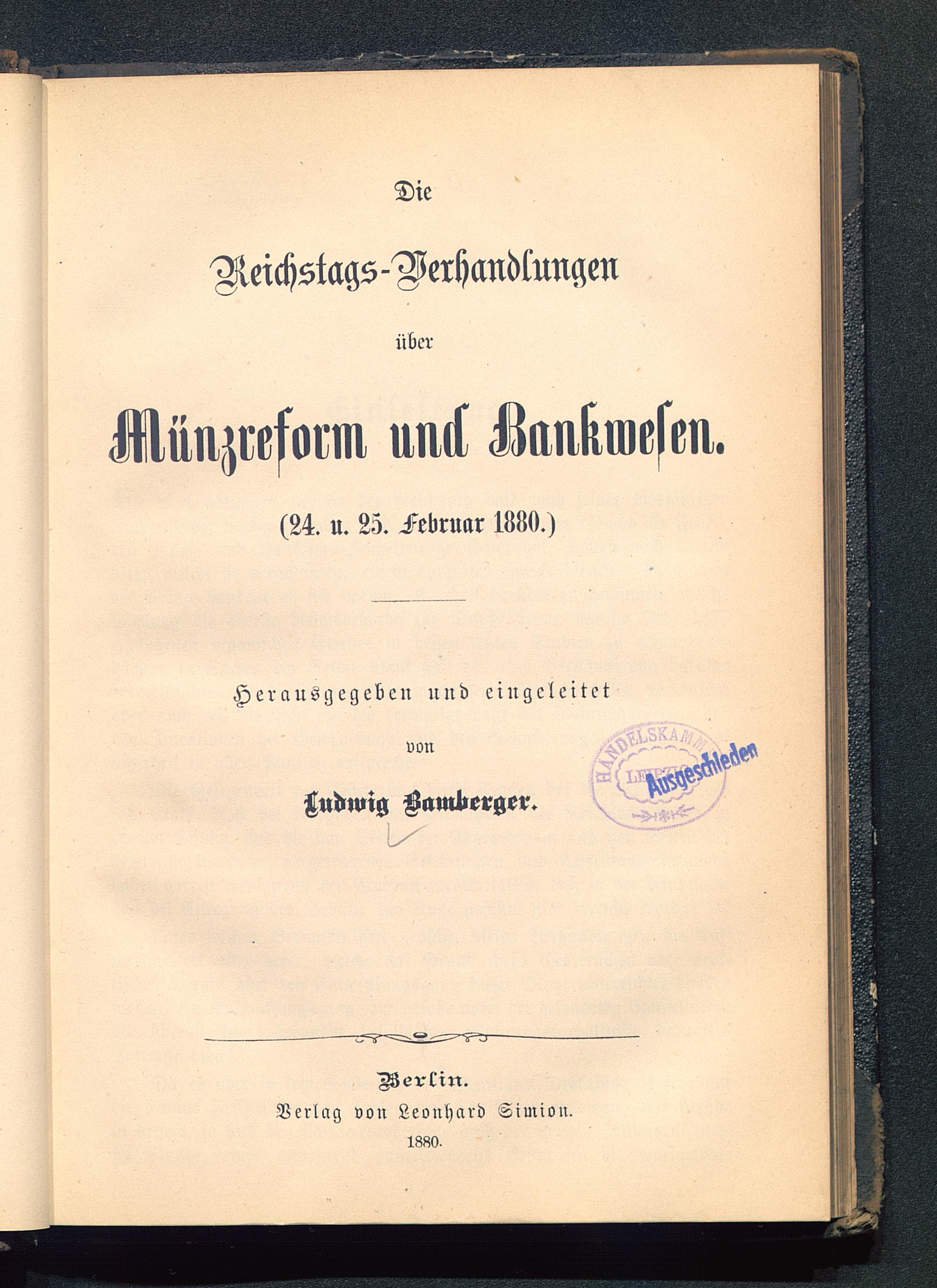 Die Reichstags-Verhandlungen über Münzreform und Bankwesen : (24. u. 25. Febr. 1880) / hrsg. und eingel. von Ludwig Bamberger