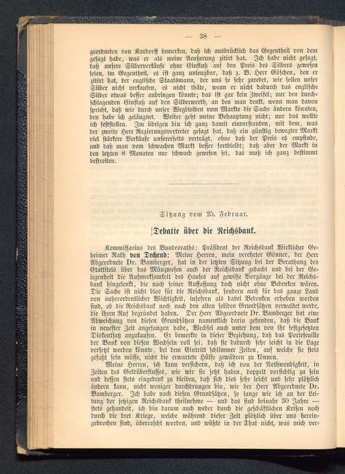 Sitzung vom 25. Februar. Debatte über die Reichsbank