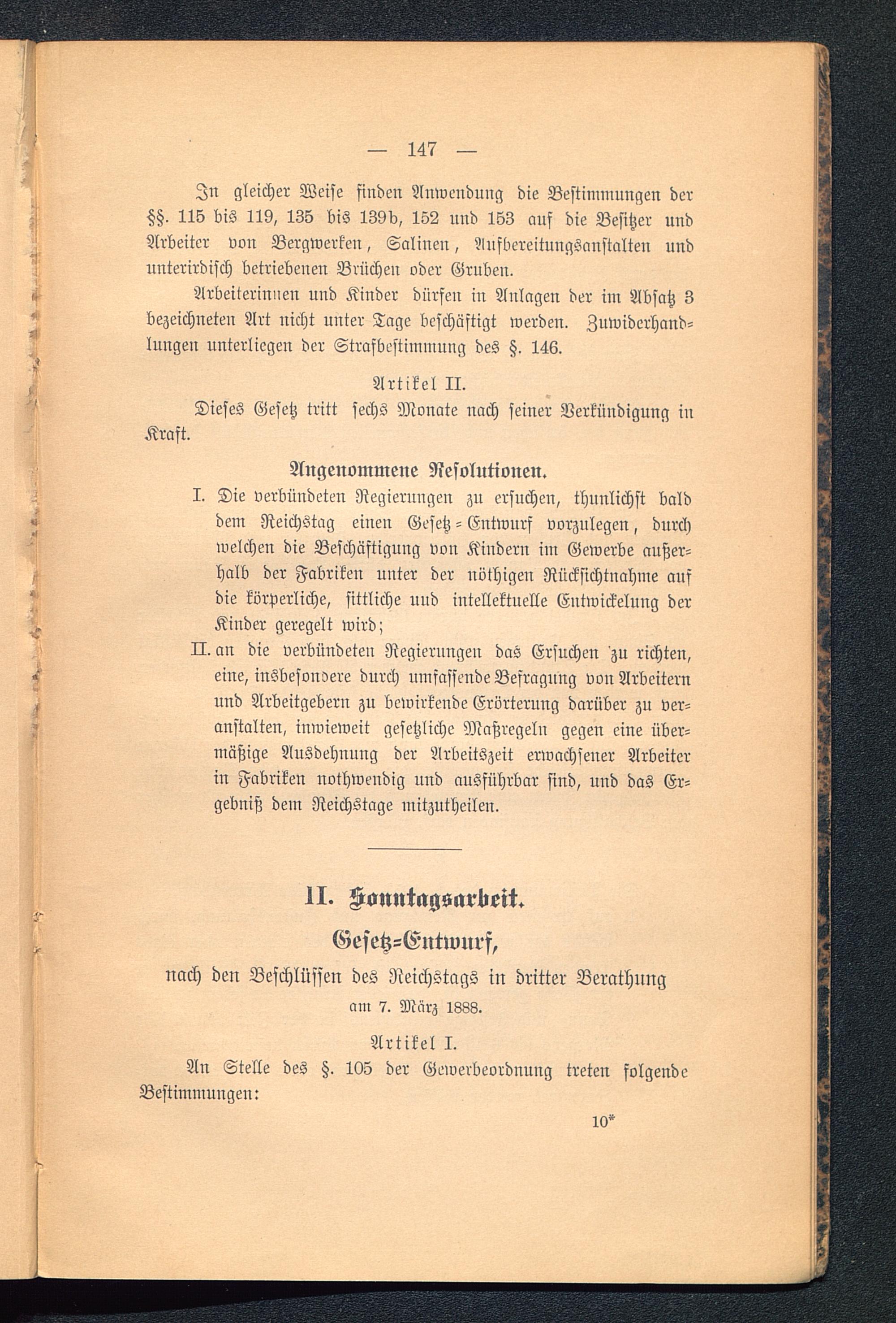 II. Sonntagsarbeit. Gesetz=Entwurf