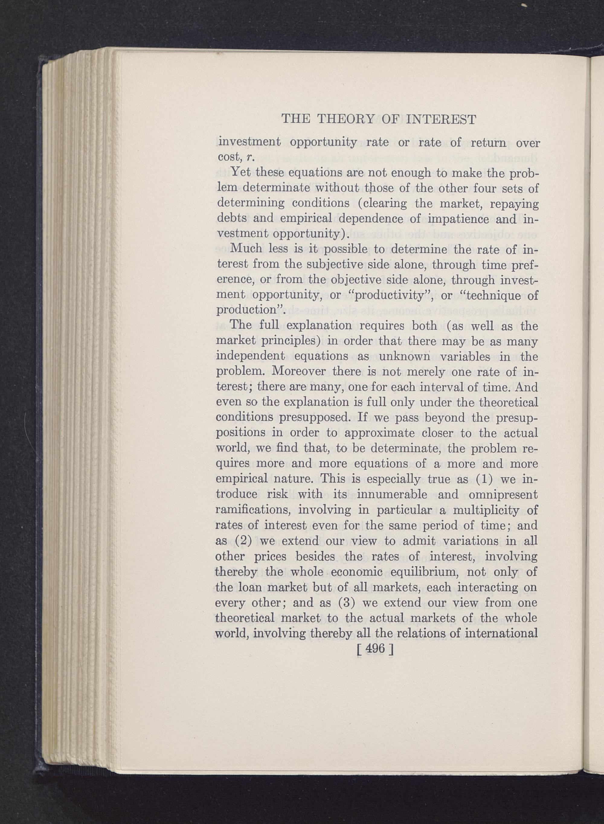 The theory of interest : as determined by impatience to spend income and opportunity to invest it / by Irving Fisher