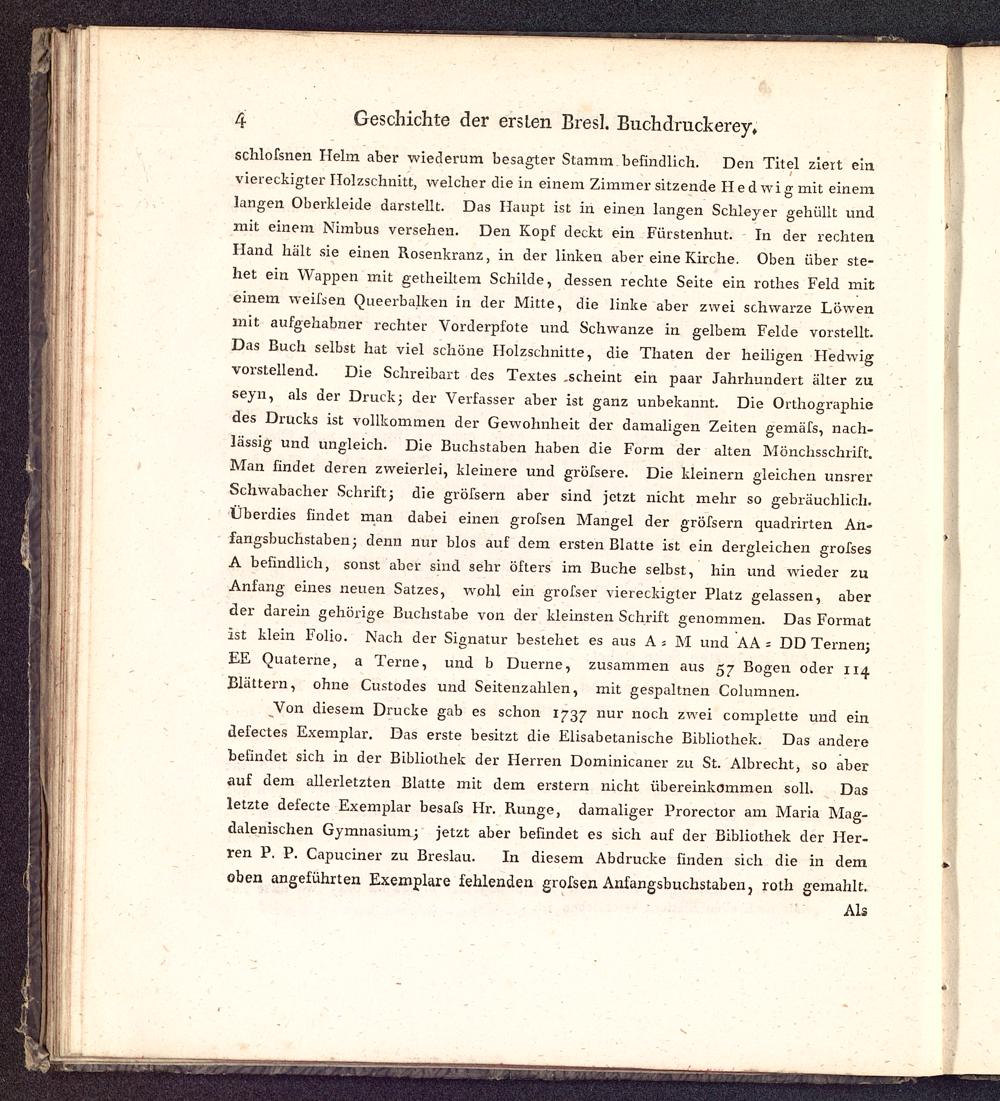 Geschichte der seit dreihundert Jahren in Breslau befindlichen Stadtbuchdruckerey als ein Beitrag zur allgemeinen Geschichte der Buchdruckerkunst : Mit 4 Bildnissen und 4 erläuternden Kupferplatten / [Johann August Barth ; Hr. Geiser ; Hr. Paritius. Johann Ephraim Scheibel [Vorr.]]