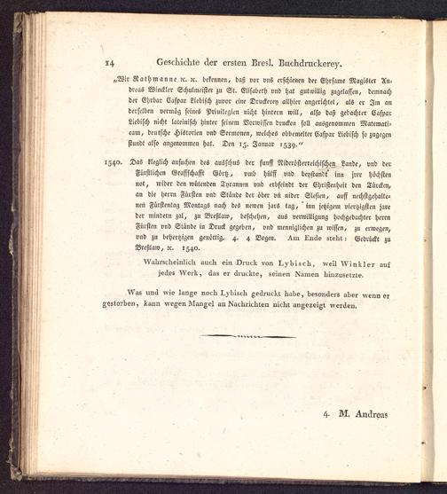 Geschichte der seit dreihundert Jahren in Breslau befindlichen Stadtbuchdruckerey als ein Beitrag zur allgemeinen Geschichte der Buchdruckerkunst : Mit 4 Bildnissen und 4 erläuternden Kupferplatten / [Johann August Barth ; Hr. Geiser ; Hr. Paritius. Johann Ephraim Scheibel [Vorr.]]
