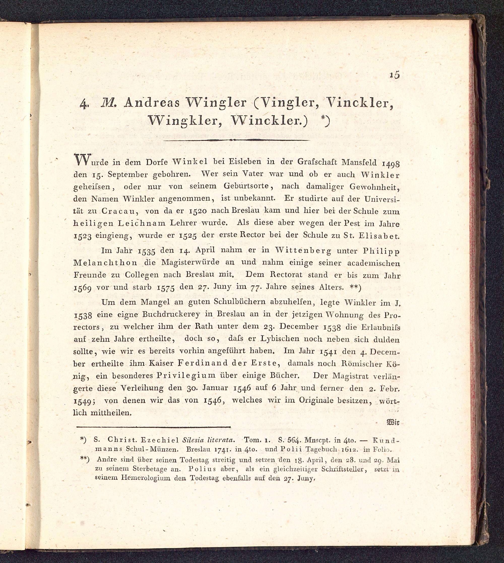 Geschichte der seit dreihundert Jahren in Breslau befindlichen Stadtbuchdruckerey als ein Beitrag zur allgemeinen Geschichte der Buchdruckerkunst : Mit 4 Bildnissen und 4 erläuternden Kupferplatten / [Johann August Barth ; Hr. Geiser ; Hr. Paritius. Johann Ephraim Scheibel [Vorr.]]