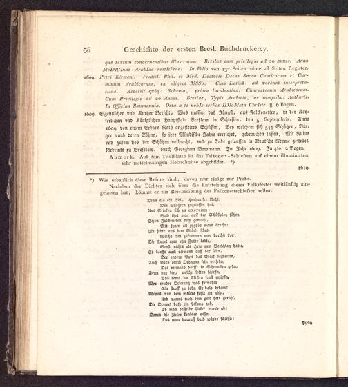 Geschichte der seit dreihundert Jahren in Breslau befindlichen Stadtbuchdruckerey als ein Beitrag zur allgemeinen Geschichte der Buchdruckerkunst : Mit 4 Bildnissen und 4 erläuternden Kupferplatten / [Johann August Barth ; Hr. Geiser ; Hr. Paritius. Johann Ephraim Scheibel [Vorr.]]