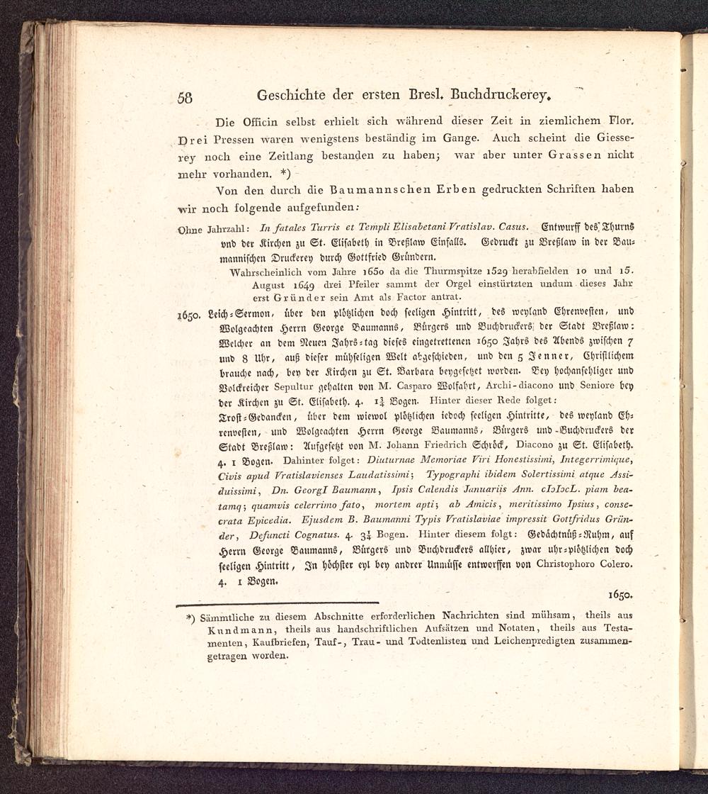 Geschichte der seit dreihundert Jahren in Breslau befindlichen Stadtbuchdruckerey als ein Beitrag zur allgemeinen Geschichte der Buchdruckerkunst : Mit 4 Bildnissen und 4 erläuternden Kupferplatten / [Johann August Barth ; Hr. Geiser ; Hr. Paritius. Johann Ephraim Scheibel [Vorr.]]