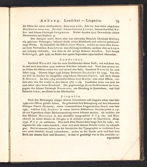 Geschichte der seit dreihundert Jahren in Breslau befindlichen Stadtbuchdruckerey als ein Beitrag zur allgemeinen Geschichte der Buchdruckerkunst : Mit 4 Bildnissen und 4 erläuternden Kupferplatten / [Johann August Barth ; Hr. Geiser ; Hr. Paritius. Johann Ephraim Scheibel [Vorr.]]
