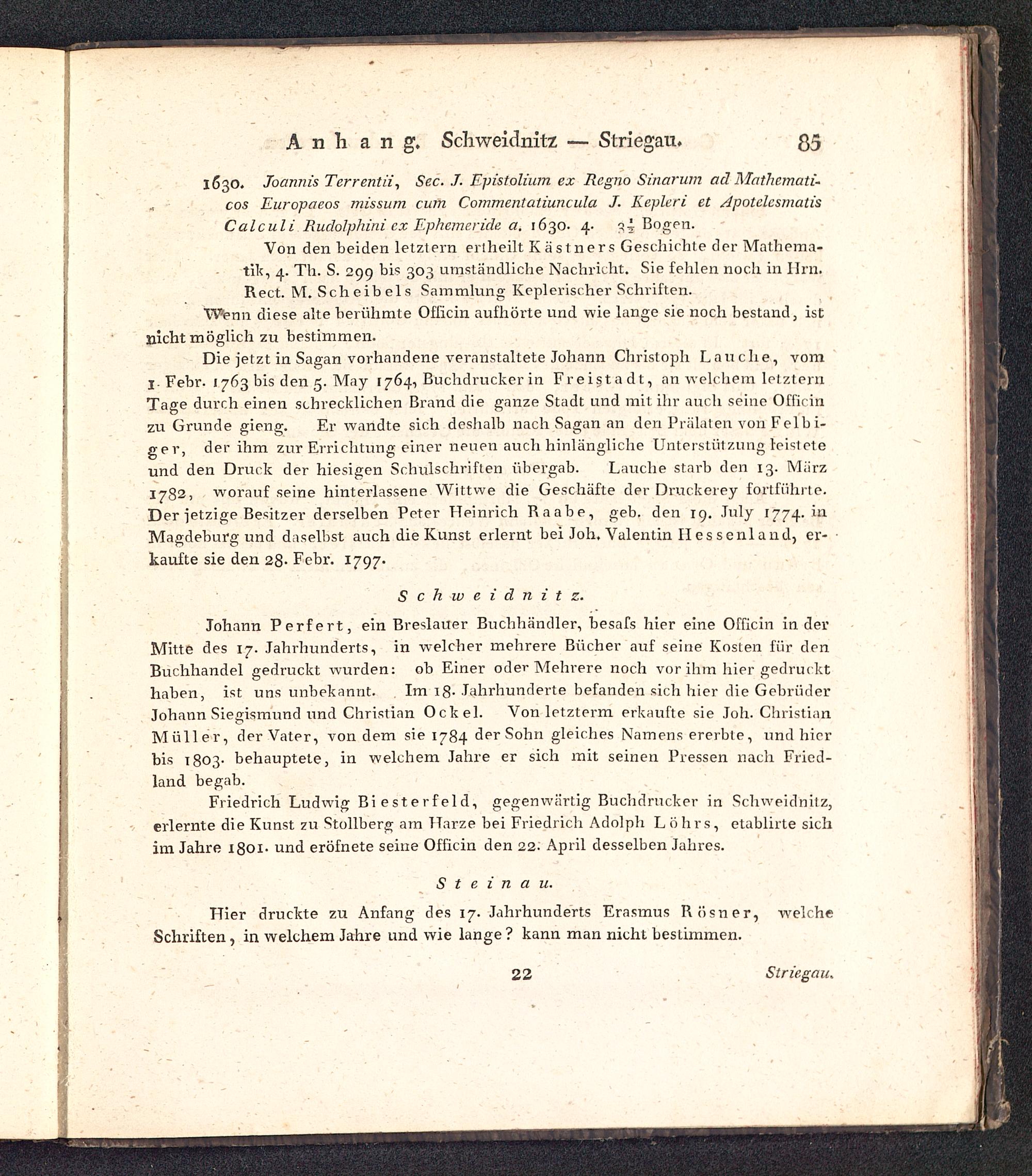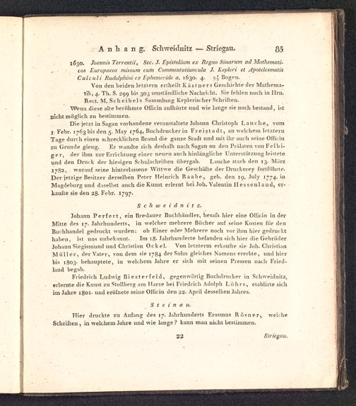 Geschichte der seit dreihundert Jahren in Breslau befindlichen Stadtbuchdruckerey als ein Beitrag zur allgemeinen Geschichte der Buchdruckerkunst : Mit 4 Bildnissen und 4 erläuternden Kupferplatten / [Johann August Barth ; Hr. Geiser ; Hr. Paritius. Johann Ephraim Scheibel [Vorr.]]