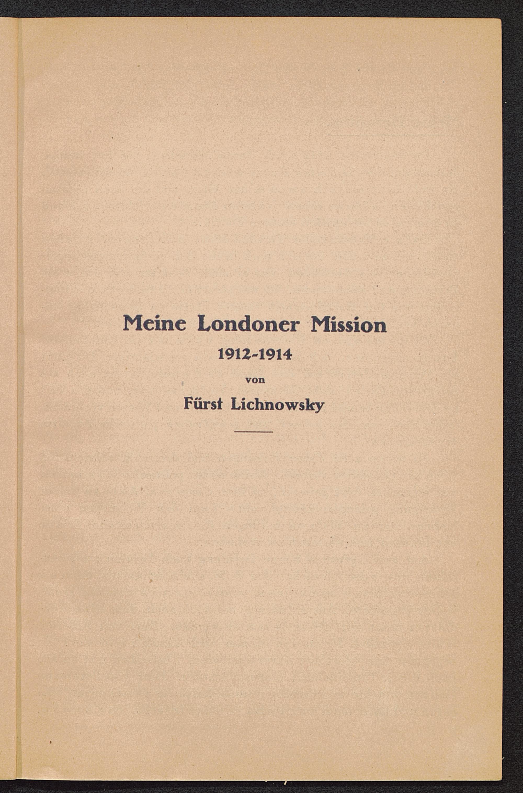 Meine Londoner Mission 1912-1914 / von Lichnowsky. Mit einem Vorw. von Otfried Nippold