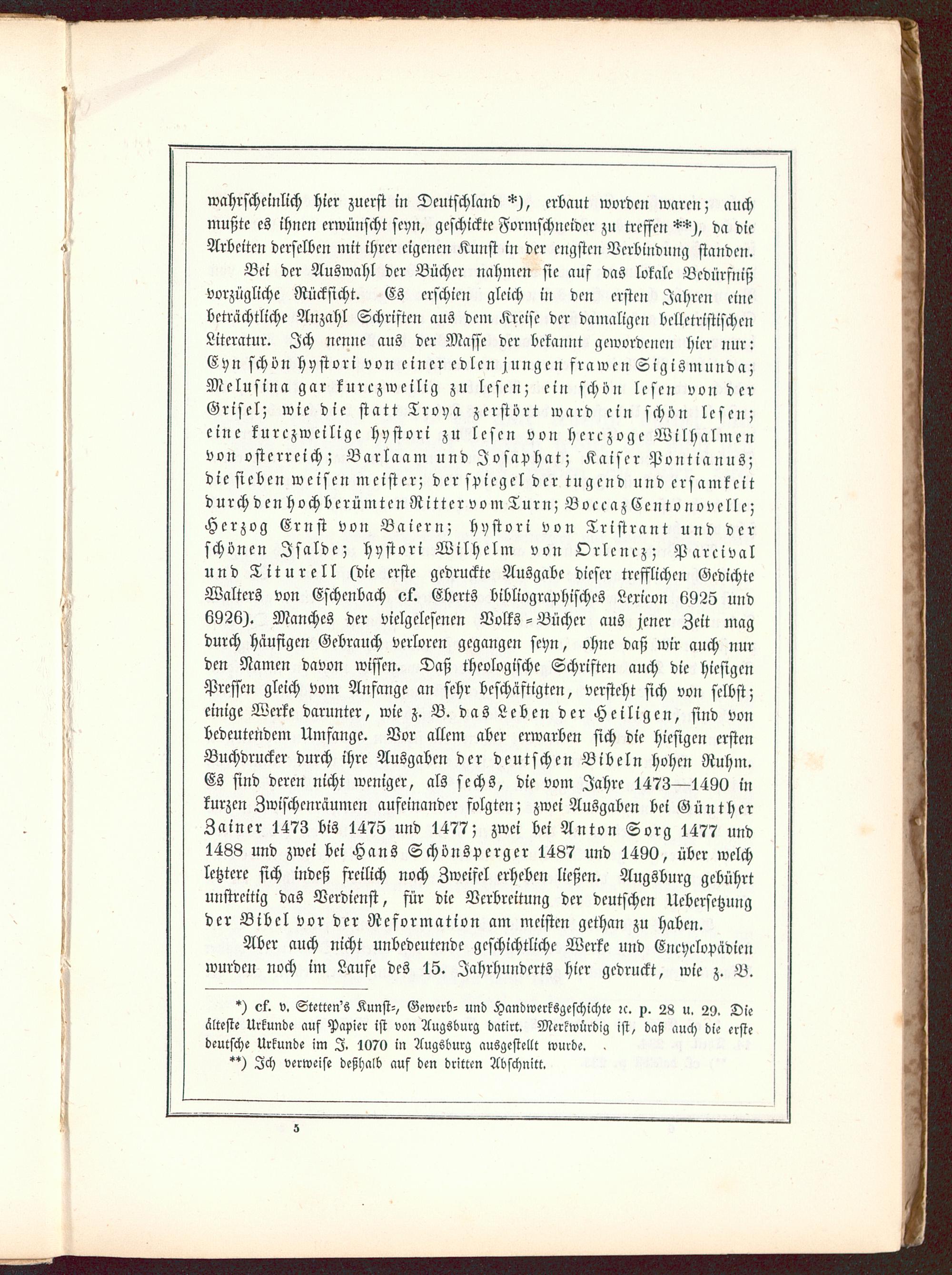 Augsburgs älteste Druckdenkmale und Formschneiderarbeiten, welche in der vereinigten königl. Kreis- und Stadtbibliothek daselbst aufbewahrt werden : nebst einer kurzen Geschichte des Bücherdruckes und Buchhandels in Augsburg ; mit 37 Abdrücken von Original-Holzschnitten aus dem 15. u. 16. Jahrhundert / von G. C. Mezger