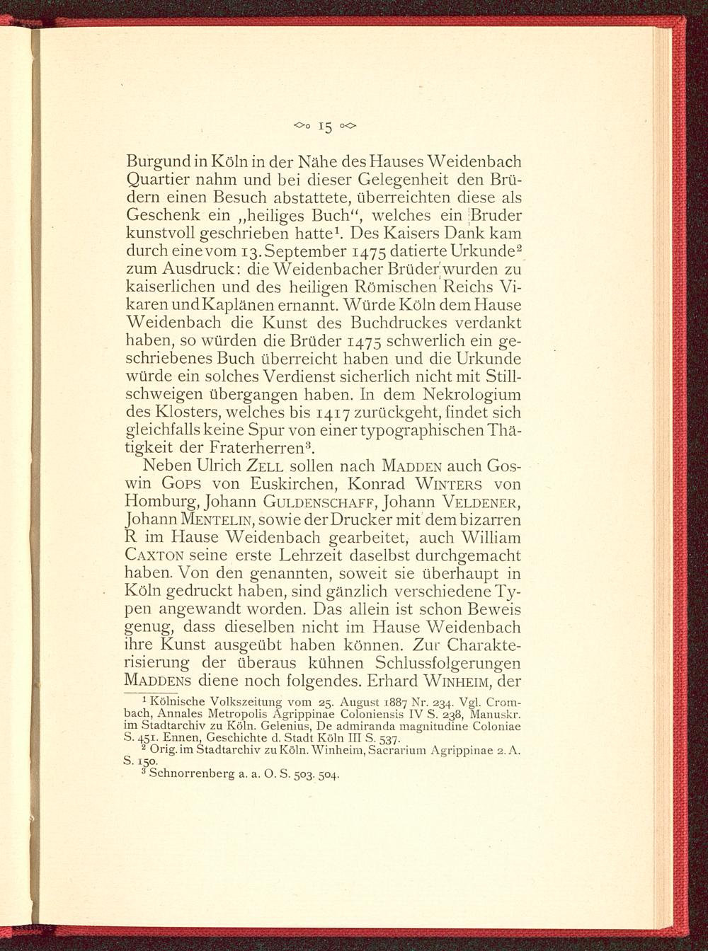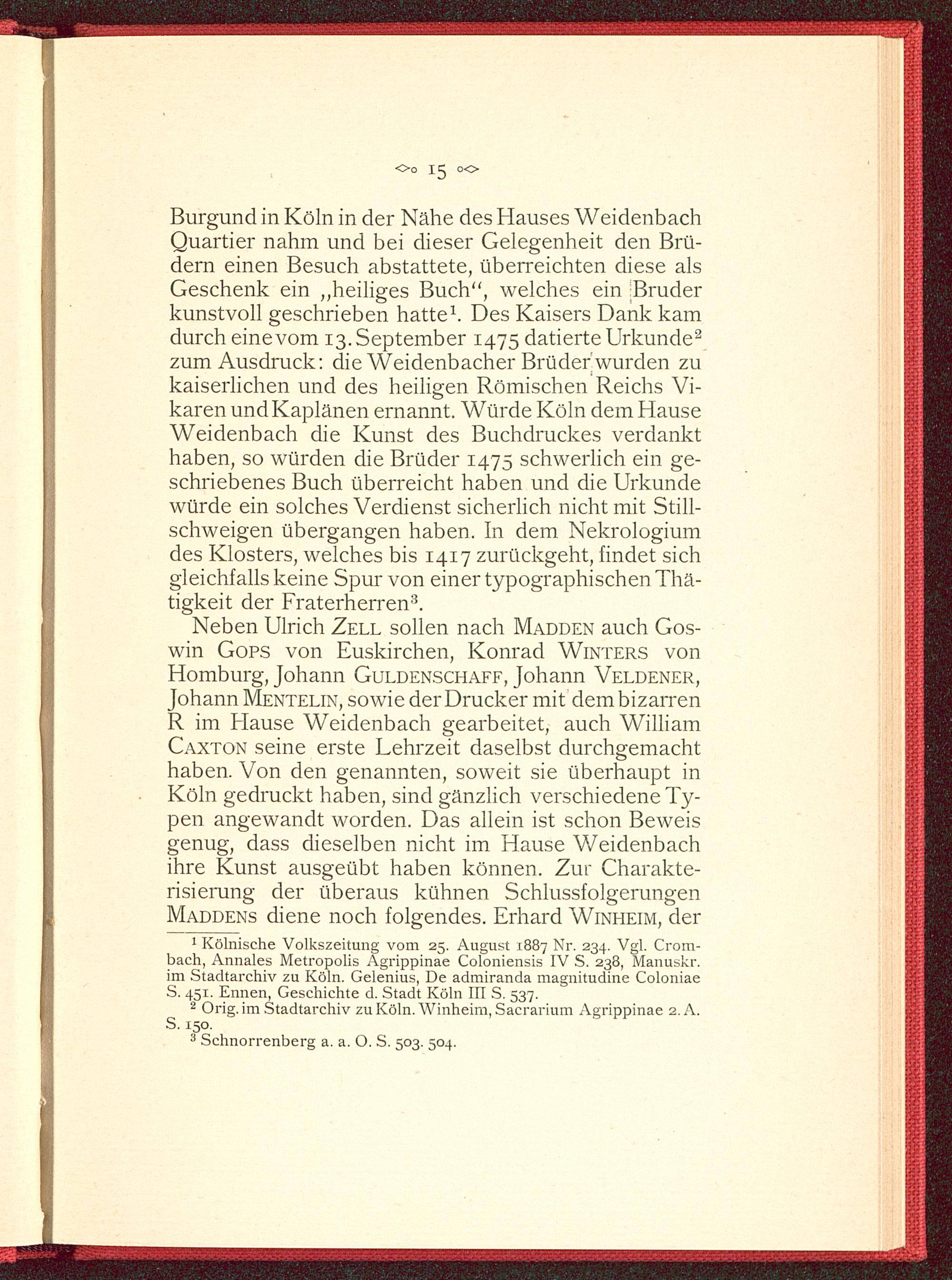 Ulrich Zell, Kölns erster Drucker : mit 8 Tafeln in Strichätzung / von Johann Jakob Merlo. Nach dem hinterlassenen Ms. berarb. von Otto Zaretzky. Hrsg. v. d. Stadtbibliothek in Koeln