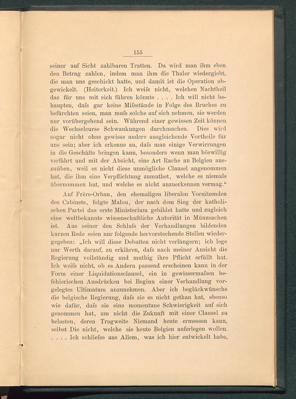 Auszug aus dem stenogrphischen Protokoll des belgischen Abgeordnetenhauses vom II. August 1885.