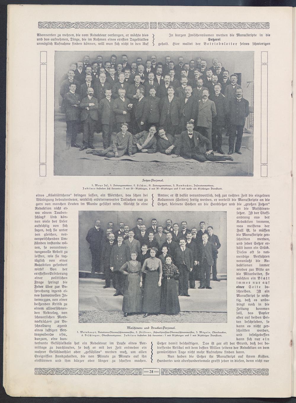 Amtes; er ist dafür verantwortlich, daß zur rechten Zeit die einzelnenKolumnen (Seiten) fertig werden, er verteilt die Manuskripte an dieSetzer, kleinere Sachen an die Handsetzer und die „großen Fetzen"