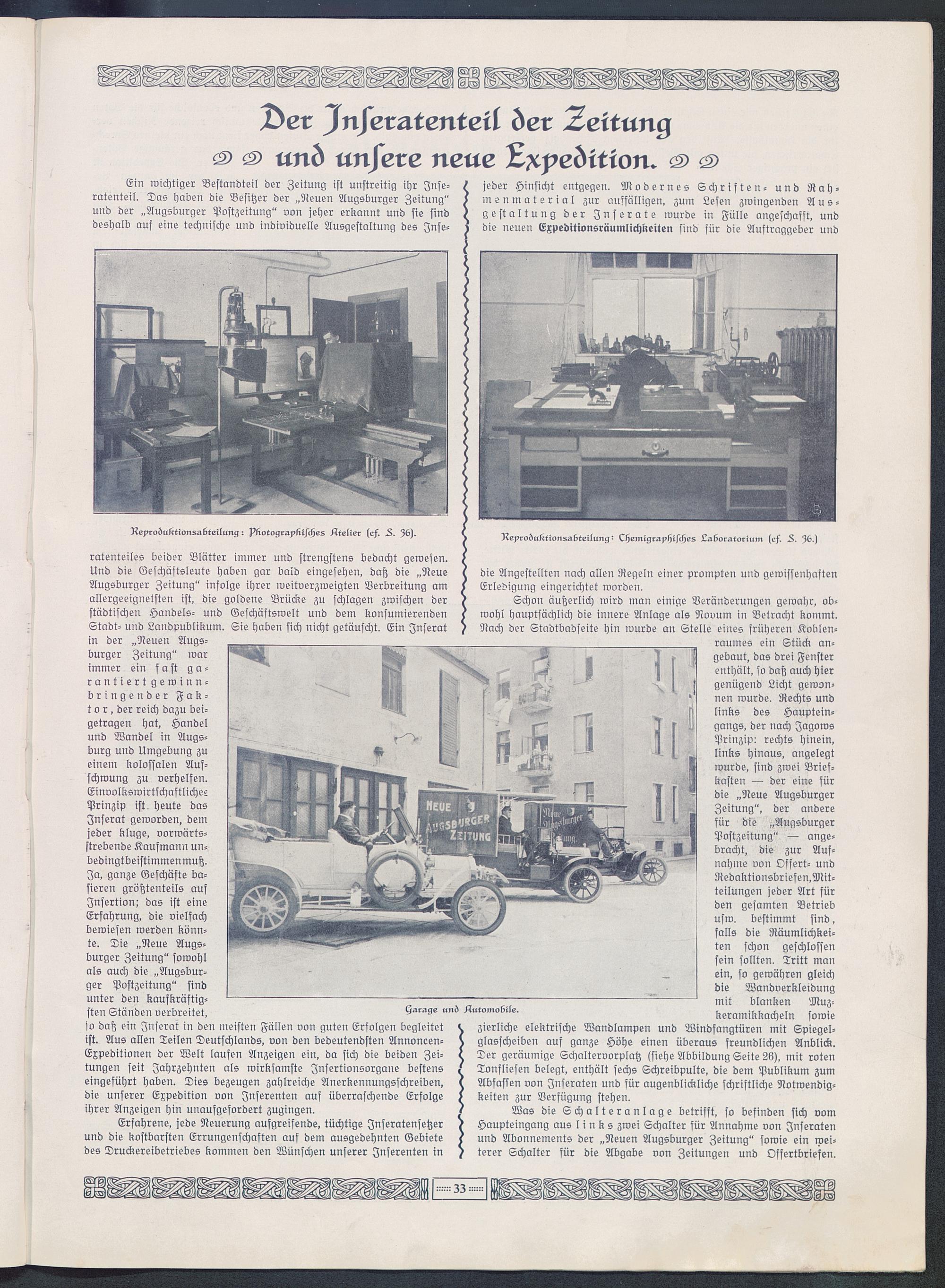 Ein wichtiger Bestandteil der Zeitung ist unstreitig ihr Inse-ratenteil. Das haben die Besitzer der „Neuen Augsburger Zeitung"und der „Augsburger Postzeitung" von jeher erkannt und sie sinddeshalb auf eine technische und individuelle Ausgestaltung des Inse-