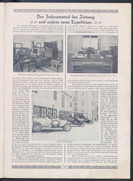 jeder Hinsicht entgegen. Modernes Schriften- und Rah-menmaterial zur auffälligen, zum Lesen zwingenden Aus-gestaltung der Inserate wurde in Fülle angeschafft, unddie neuen Expeditionsräumlichkeiten sind für die Auftraggeber und