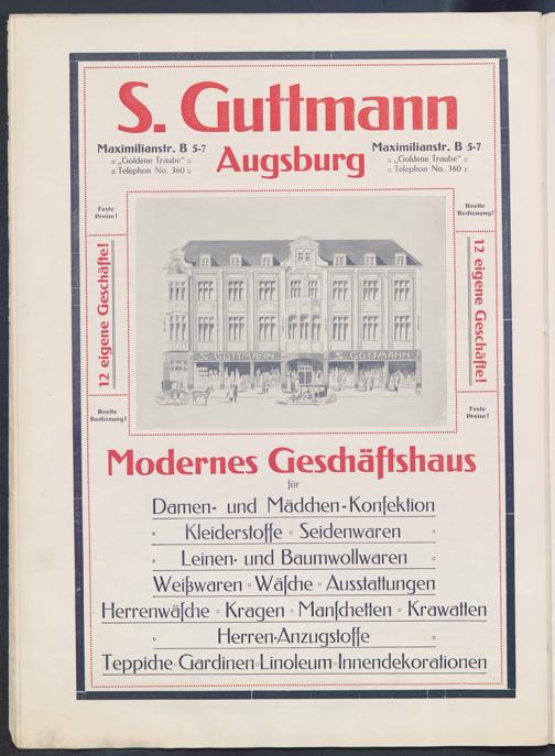 Damen- und Mädchen ■ KonfektionKleiderstoffe ■ SeidenwarenLeinen- und BaumwollwarenWeifswaren - Wäfdie =■ AusstattungenHerrenwäfche Kragen Manfdietten Krawatten