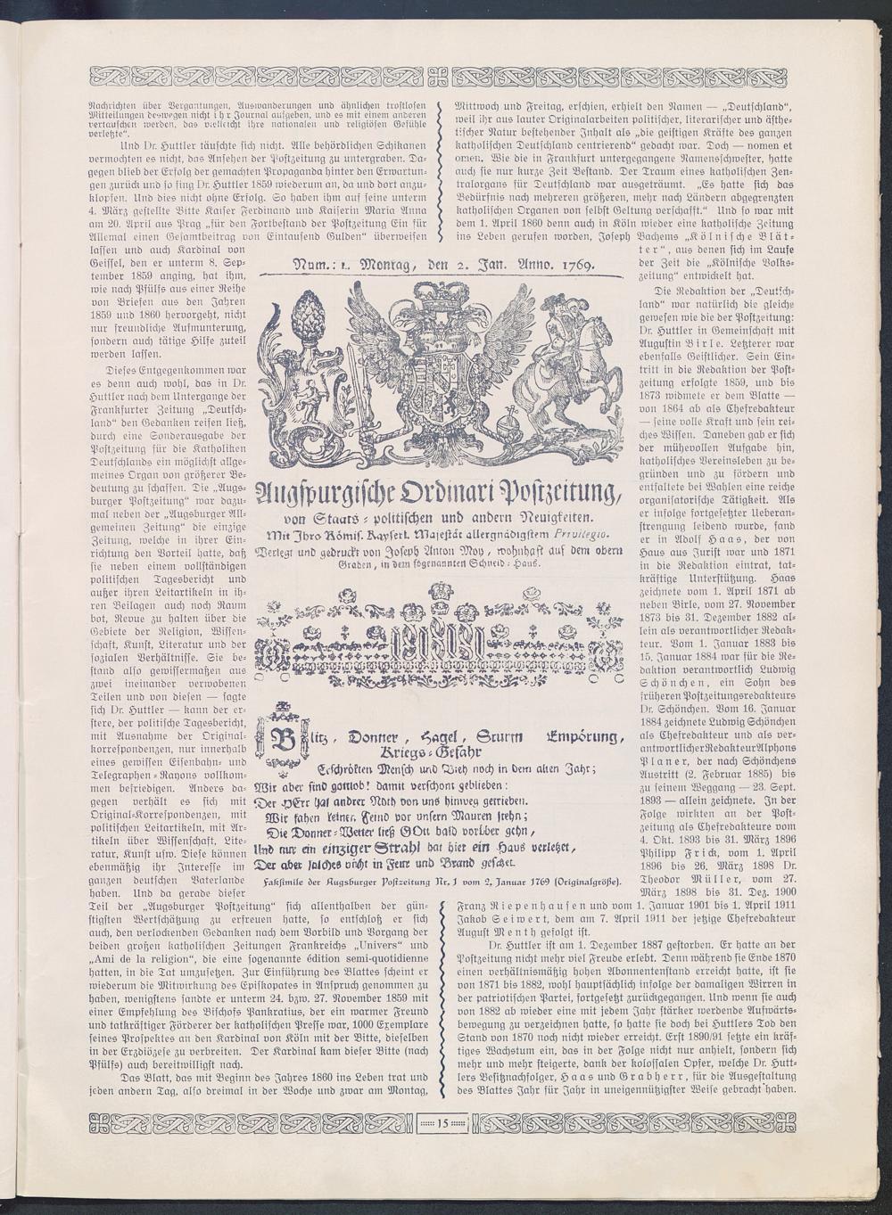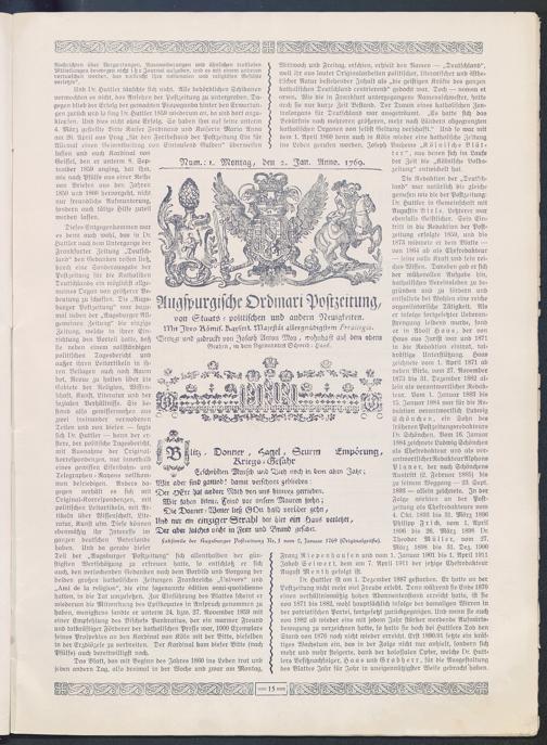 Die "Augsburger Postzeitung", eine der ältesten Zeitungen