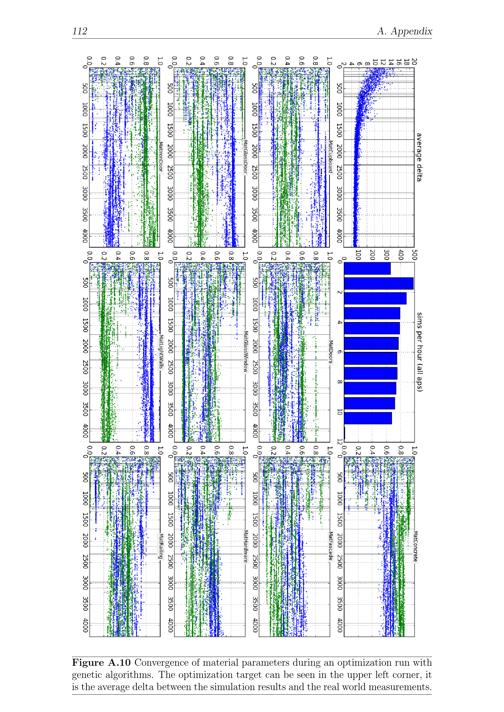 112 A. AppendixFigure A.10 Convergence of material parameters during an optimization run withgenetic algorithms. The optimization target can be seen in the upper left corner, itis the average delta between the simulation results and the real world measurements.