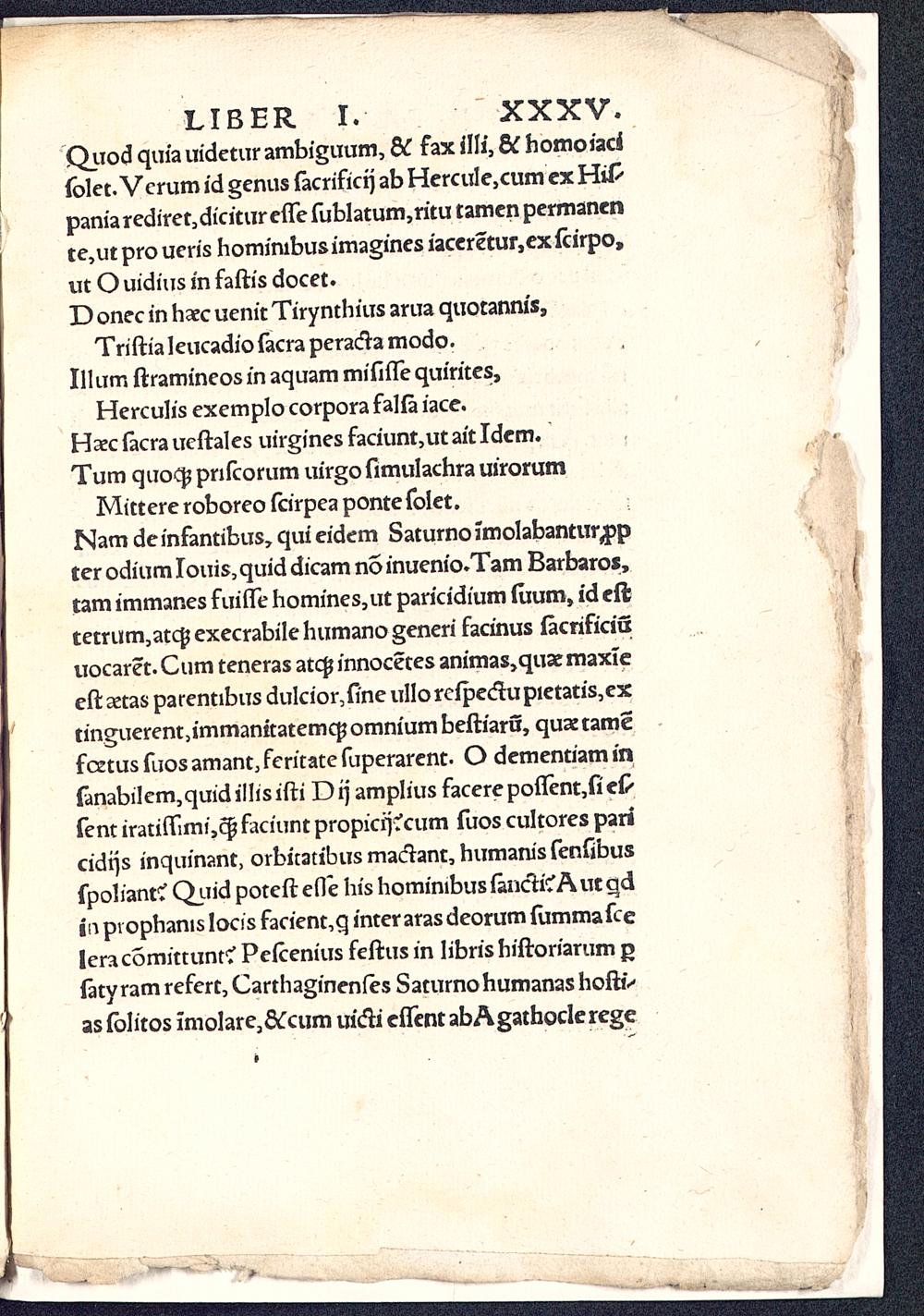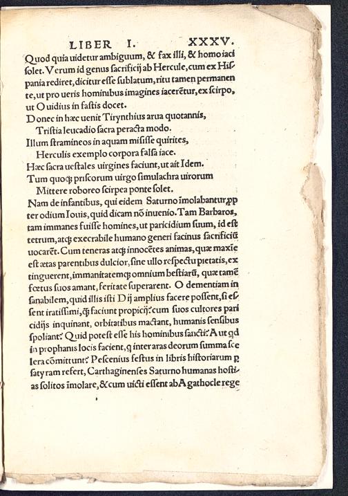 Mittere roboreo fcirpea ponte folet.Nam de infantibus, qui eidem Saturno imolabantur^pter odium Iouis, quid dicam no inuenio.Tam Barbaros,tam immanes fuifle homines,ut paricidium ftium, id efttetrum,atcf$execrabilehumanogeneri facinus facrificiutiocaret. Cum teneras atcg innocetes animas,quar maxieeftxtas parentibus duIcior,fi'neuIIorcipedtupietatis,extinguerentjimmanitatemcpomnium beftiaru, quajtamefcetusfuosamant,feritatefuperarent. O dementiaminfanabilem,quidillis ifti Dtj amplius facerepoflentjfiefrfent irati(fimi,c| faciunt propicrjvcum fuos cultores paricidrjs inquinant, orbitatibus macrant, humanis fenfibusfpol iant? Quid poteft efle his hominibus fanch'?A ut qdin pvophanis lods facient,q inter aras deorum fummafceleracomittunrv Pelcenius feftusin libris hiftoriarum gfatyramrefert, Carthaginenfes SaturnohumanashoftiVas fblitos imolare,c¥cum uifti eflent abAgathoderege
